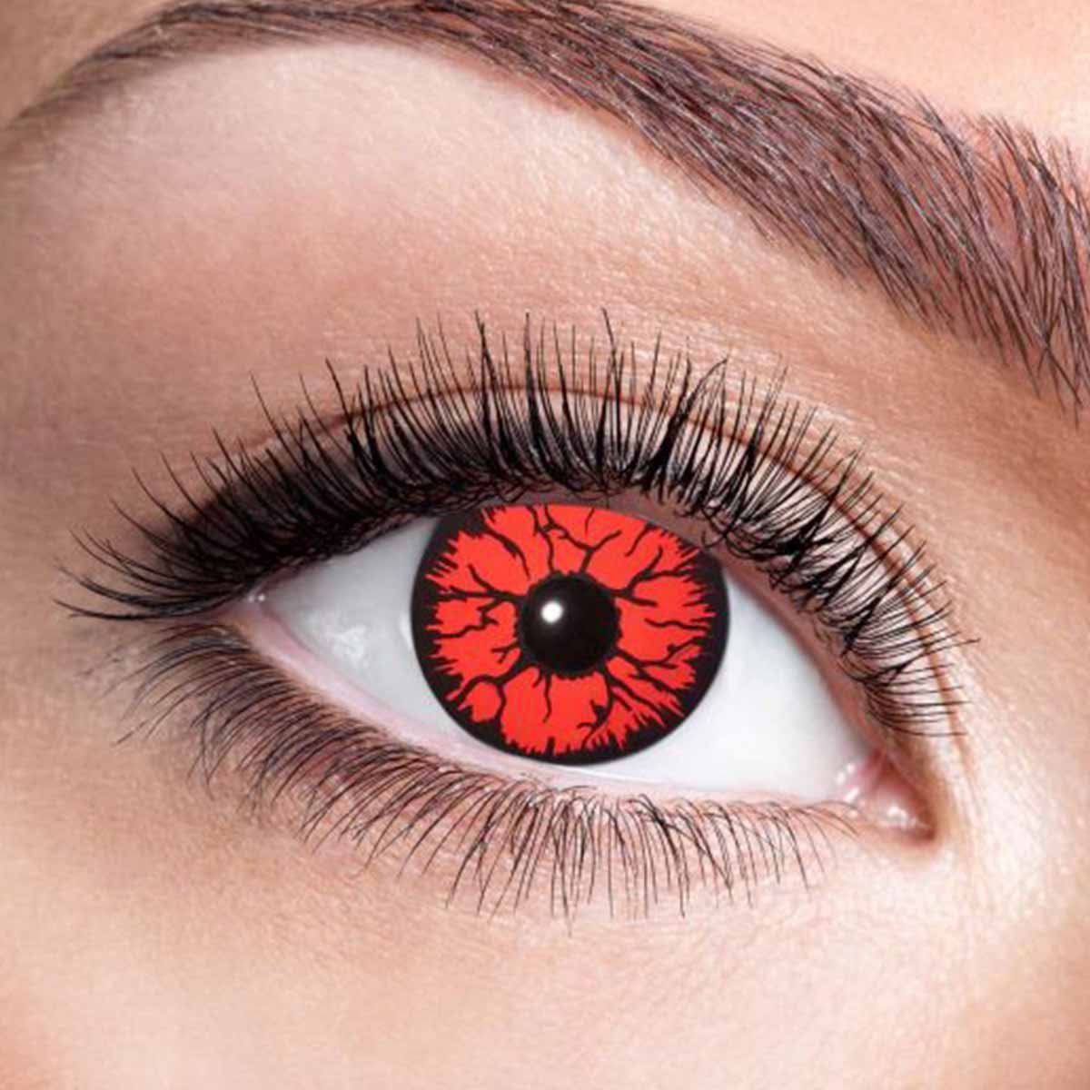 Röda heltäckande linser med monster motiv för din halloweenutklädnad är det perfekta komplementet till din maskeraddräkt och halloween sminkning. Låt den röda färgen av linsen täcka din riktiga ögonfärg. Dessa röda megatron linser är vältäckande och täcker även en del av pupillen vilket skapar ett extra läskigt monstermotiv på ögonen.