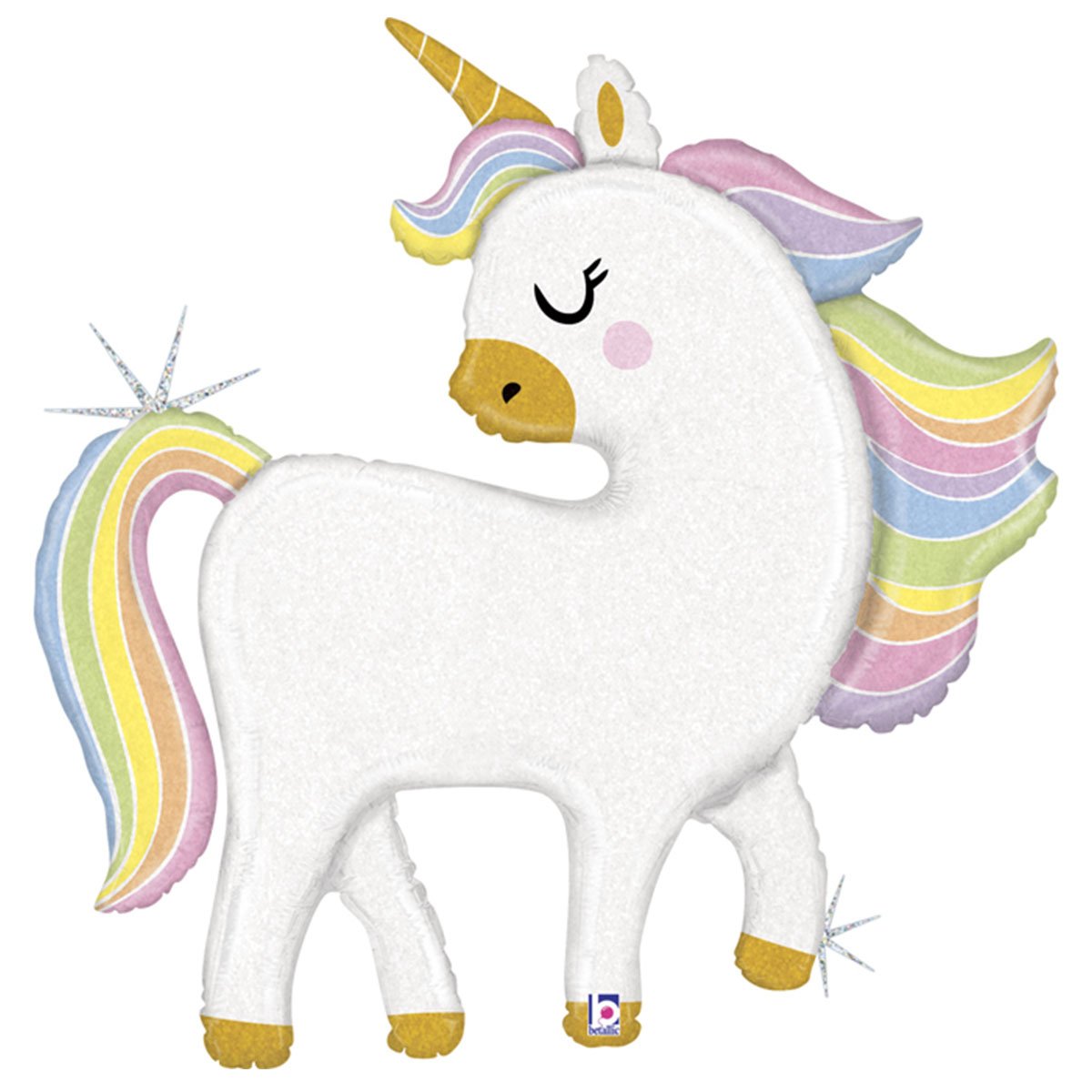 Folieballong, Glitter Pastel Unicorn 123 cm