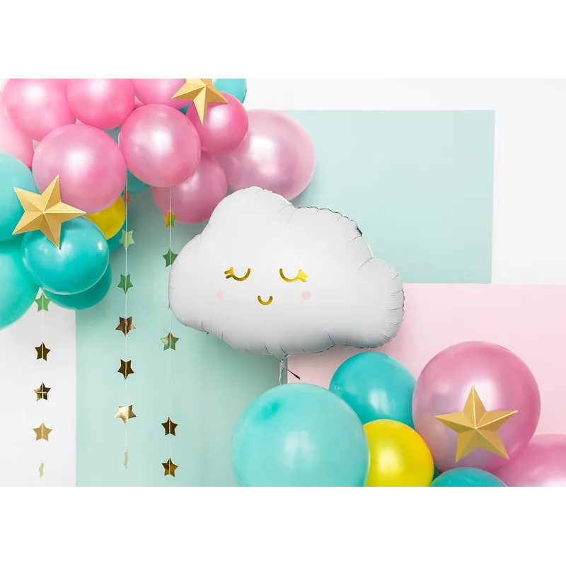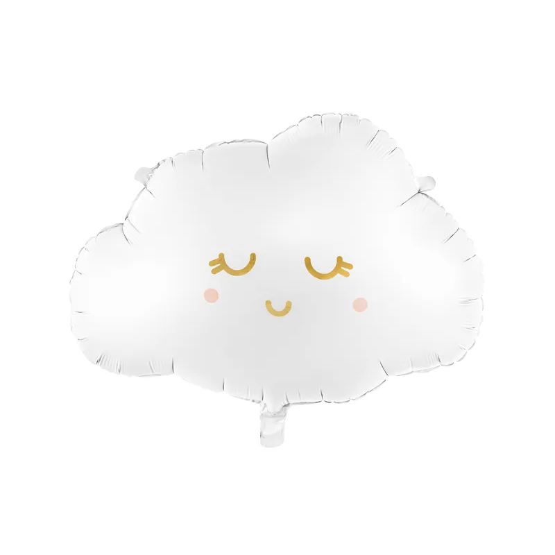 Skapa en drömmig och lekfull stämning på kalaset med denna charmiga molnformade folieballong! Ballongen är vit med ett gulligt, sovande ansikte i mjuka pastelltoner och detaljer i guld – perfekt för baby showers, dop, ettårskalas eller andra festliga tillfällen.