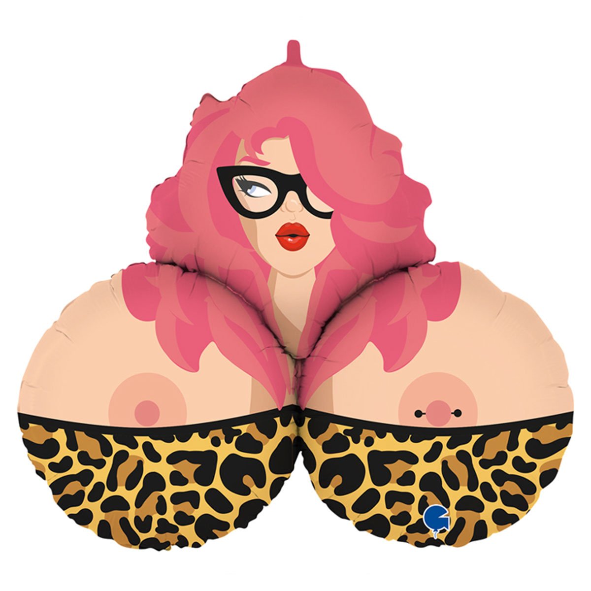 Ballongen är utformad som en kurvig dam med rosa hår, klädd i en leopardmönstrad bikini och stiliga glasögon. Hon är redo att sätta fart på festligheterna och sprida glädje och skratt bland gästerna. Fyll den med helium för att få den att sväva elegant över festen eller använd luft för att placera den på en framträdande plats.
