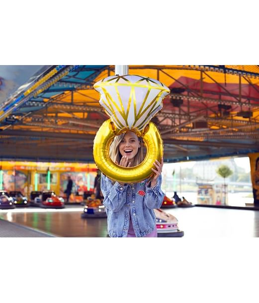 Skapa en romantisk och festlig känsla med vår stora diamant-folieballong i skimrande ton. Den imponerande storleken på 60 × 95 cm gör den till ett perfekt blickfång på möhippa, förlovningsfest eller brudshower. Ballongen fylls enkelt med luft eller helium och blir en elegant dekoration över bordet, i fotohörnan eller som del av en ballongbukett.