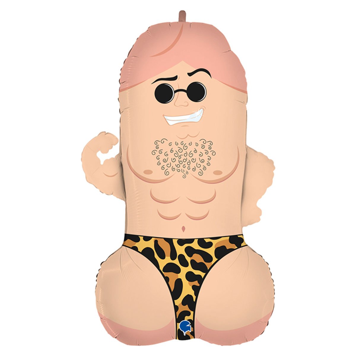 Sätt pricken över i på din fest med denna extremt roliga willy-folieballong! Perfekt för svensexor, möhippor och födelsedagar som behöver en extra dos humor och våghalsighet. Denna figurformade heliumballong föreställer en kaxig 'karaktär' i leopardmönstrade underkläder och solglasögon, redo att ta festen till nästa nivå. Med sina imponerande 91 cm är den garanterad att dra blickarna till sig och locka fram skratt.