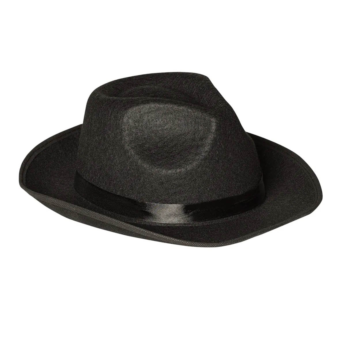 Sätt stilen med denna klassiska svarta gangsterhatt! Oavsett om du vill klä ut dig som en tuff 1920-tals gangster eller en stilren maffiaboss, är denna hatt ett perfekt val för maskeraden eller temafesten. Med sin eleganta design i svart filt och ett matchande band, ger denna hatt en sofistikerad och autentisk känsla. Den passar utmärkt till alla typer av gangster- eller maffiateman, men kan även användas för en mer formell look på andra maskerader.
