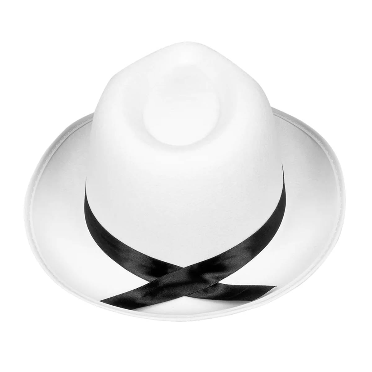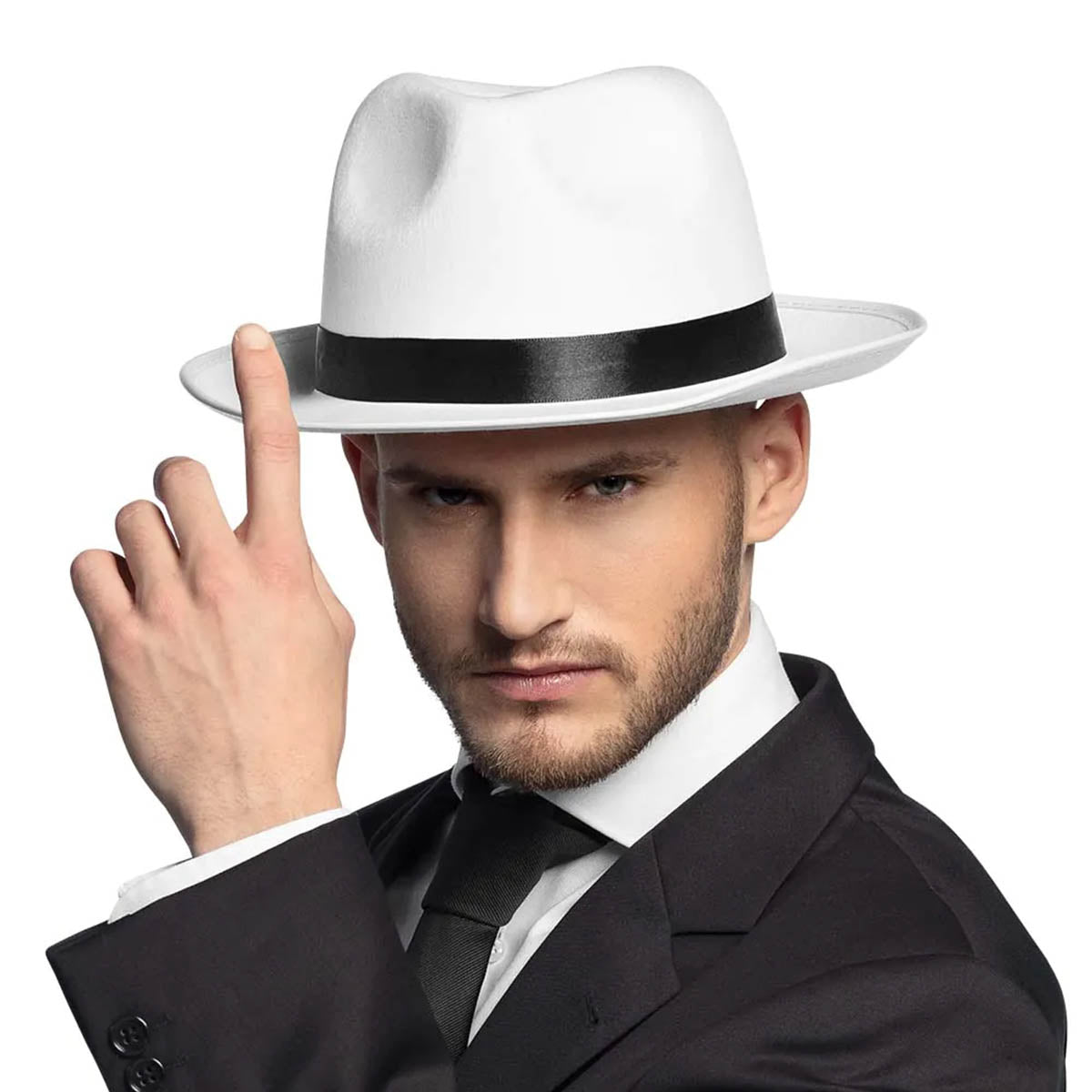 Vill du skapa en look som utstrålar tidlös elegans och rå attityd? Denna vita gangsterhatt med svart band ger dig precis den känslan! Inspirerad av 1920-talets maffia och tidens stilfulla gentlemän, är hatten perfekt för temafester, maskerader eller varför inte ett stiligt halloweenparty. Den vita hatten, tillsammans med det kontrasterande svarta bandet, gör att du genast sticker ut och tillför en touch av klassisk gangsterstil till vilken outfit som helst.