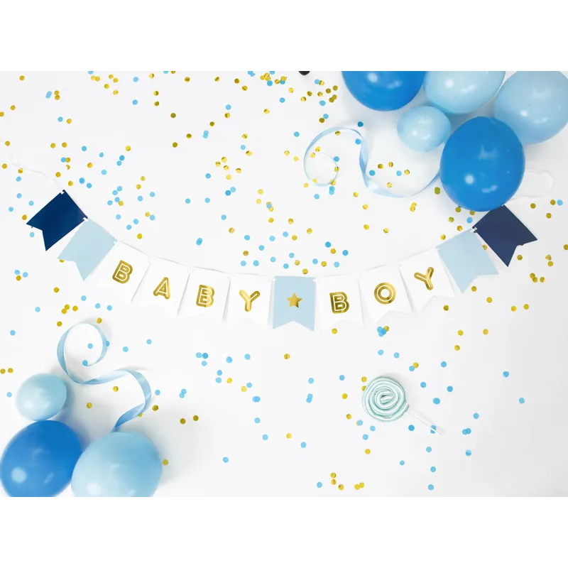 Gör firandet extra festligt med denna charmiga “Baby Boy”-vimpel!