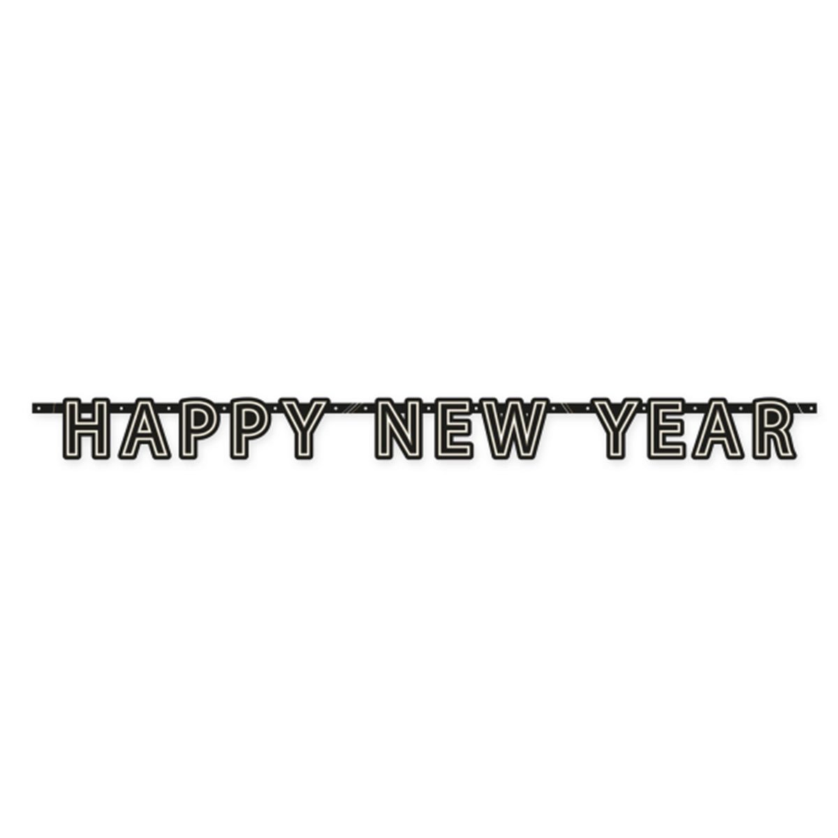 Fin nyårsgirlang med svarta bokstäver i klassisk stil.