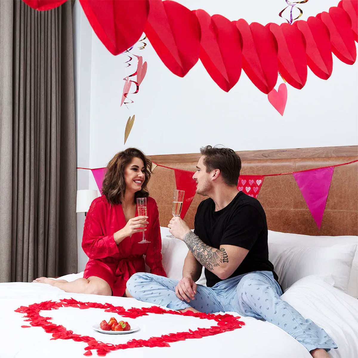 Skapa en romantisk och hjärtlig stämning med denna vackra hjärtgirlang! Den är fyra meter lång och tillverkad av rött papper, perfekt för att dekorera vid speciella tillfällen som Alla hjärtans dag, bröllop eller årsdagar. Med sina söta hjärtan sprider den både värme och glädje och fungerar lika bra som en enkel dekoration eller som en del av en större festlig utsmyckning.