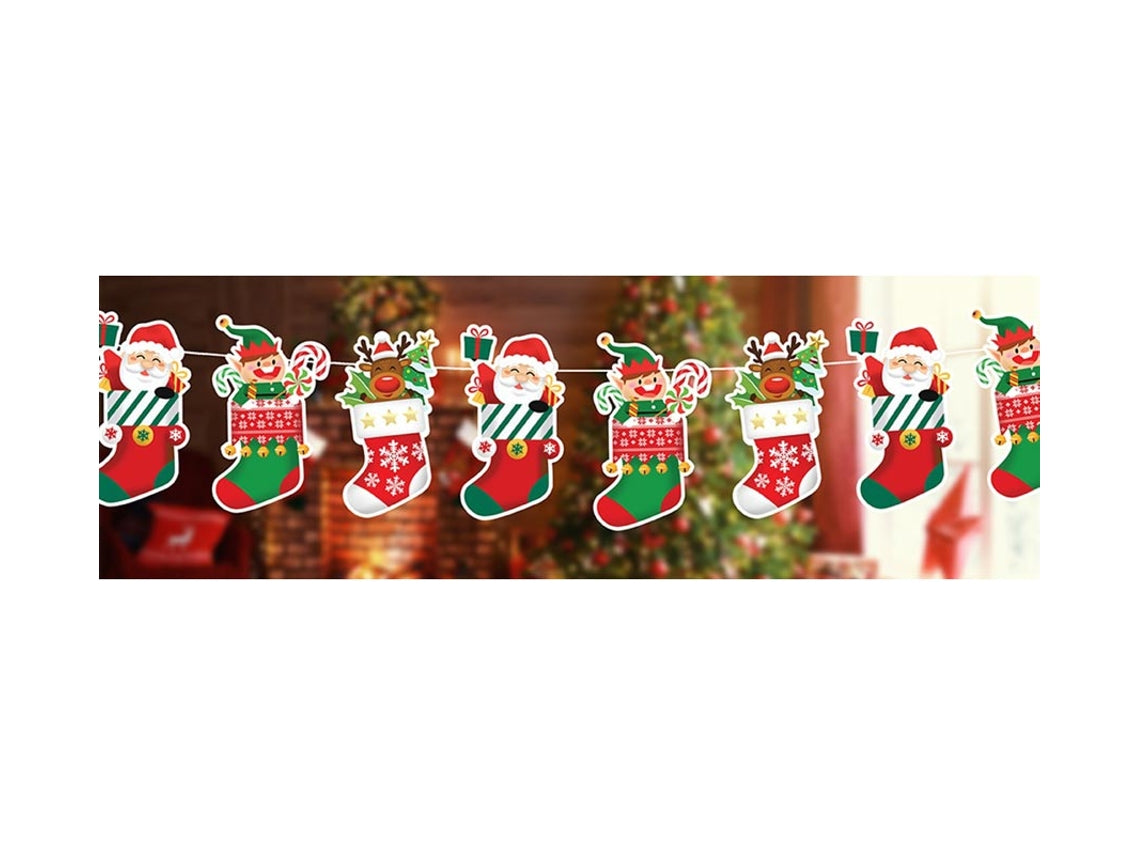 Skapa en extra mysig och lekfull julstämning med denna färgglada julgirlang! Varje del består av en charmig julstrumpa prydd med festliga figurer som tomtar, glada nissar och söta renar. De starka julfärgerna och de detaljerade illustrationerna gör girlangen till ett perfekt tillskott i hemmet, på kontoret, i klassrummet eller på julfesten.