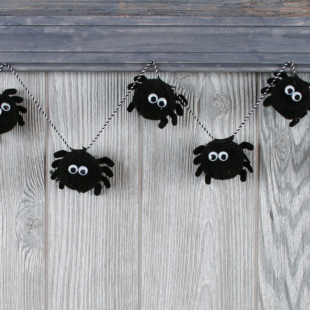 Är du ett fan av spindlar eller har du fobi? Överraska dina gäster med den här spindelgirlangen i en aning snällare tappning. Nio fluffiga små spindlar placerade på en 1,8 m lång tråd att fästa i taket, på väggen eller i dörröppningen.