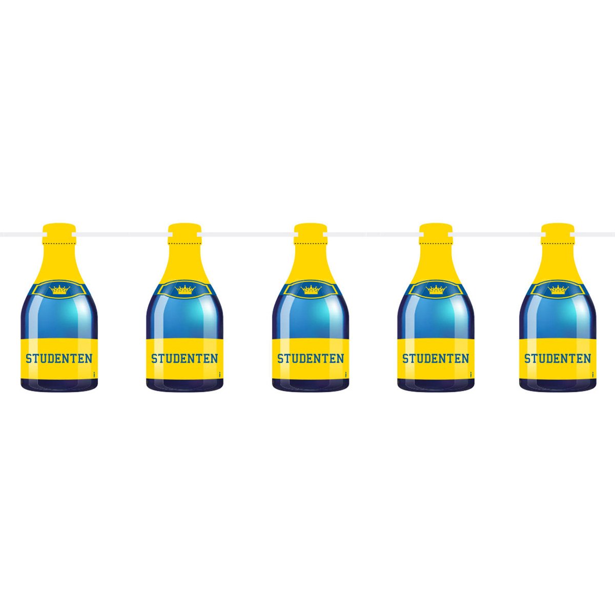Fira studenten i stil med vår underbara studentgirlang! Denna 6 meter långa girlang är dekorerad med papp-utskurna blå och gula champagneflaskor, var och en markerad med den glada texten "studenten". Skapa en festlig atmosfär och gör din students speciella dag ännu mer minnesvärd med denna praktfulla dekoration. Girlangen är perfekt för att dekorera din studentfestlokation och ger den en festlig touch.
