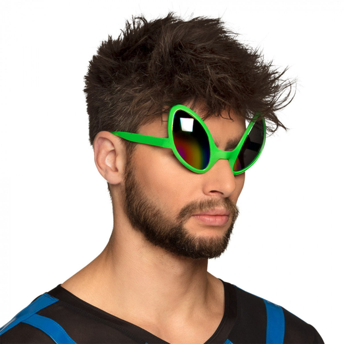 Dessa solglasögon i form av alien ögon är oförglömliga. Helt klart ett av de roligaste solglasögon man kan köpa för pengar. Förvandla dig snabbt till en alien med att sminka ditt ansikte bakom och maskerad förklädnaden är redo för festen. Gå till ett full moon party med alien ögon som solglasögon och UV-smink i ansikte och på kläder. Oförglömlig.