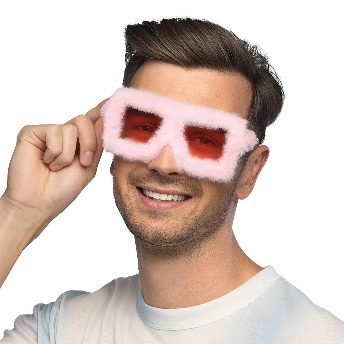 Party fluffy glasögonen är ett par maxade accessoarglasögon med rosa fluff som förvandlar vilket party som helst till en glitterbomb av självförtroende. Med fyrkantig oversize-design, färgade linser i varmt rödrosa och mjuk fuskpäls runt hela ramen är de lika mycket en statement-piece som de är ett mysterium: är det glamour, galenskap – eller båda?
