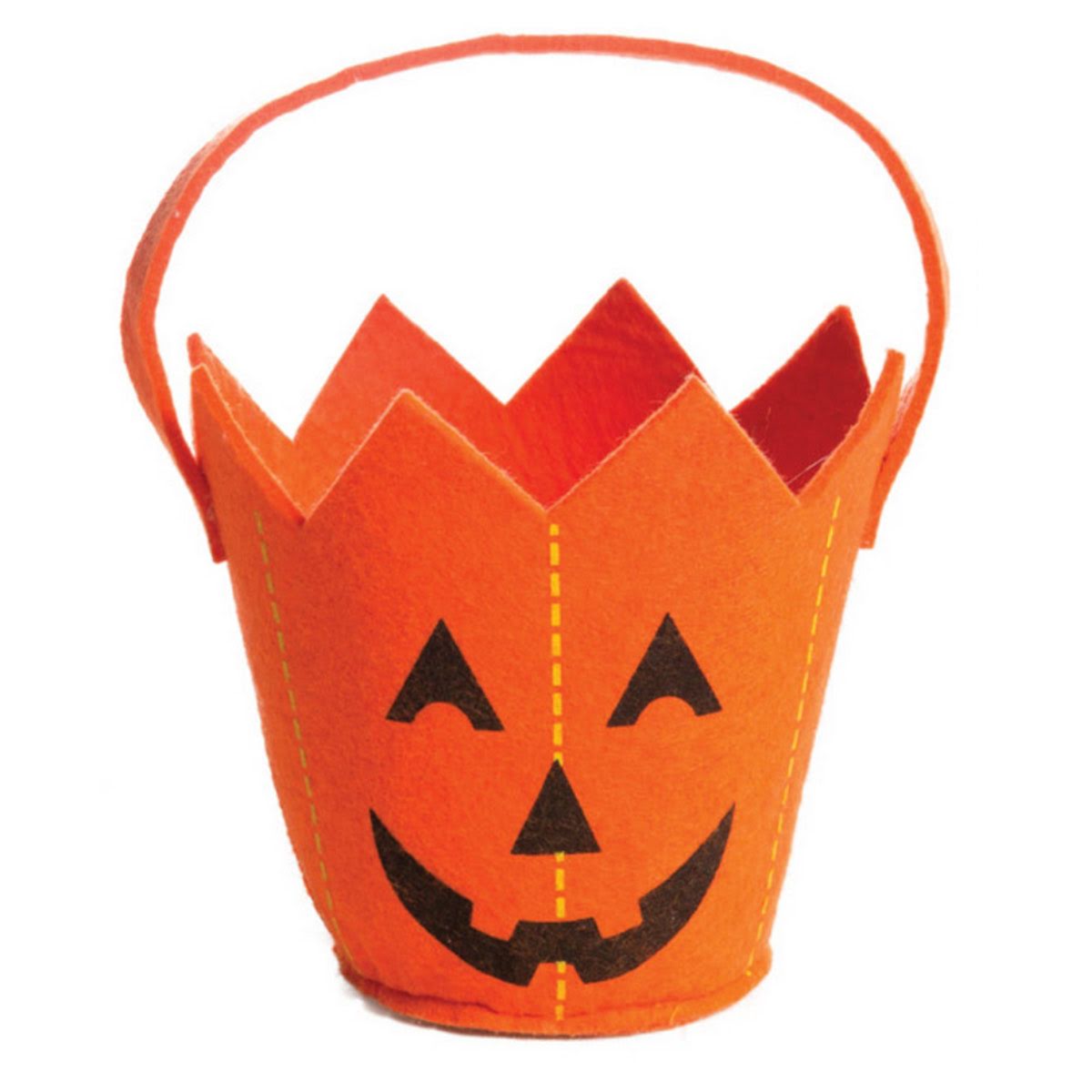 Vare sig du är häxa, skelett eller clown bör du ha något med dig när du samlar godis vid ”trick or treat”. För godis blir det garanterat när ett skrämmande bus utlovas. Annars kan denna hink med pumpamotiv med fördel användas till att servera snacksen i på halloweenfesten.
