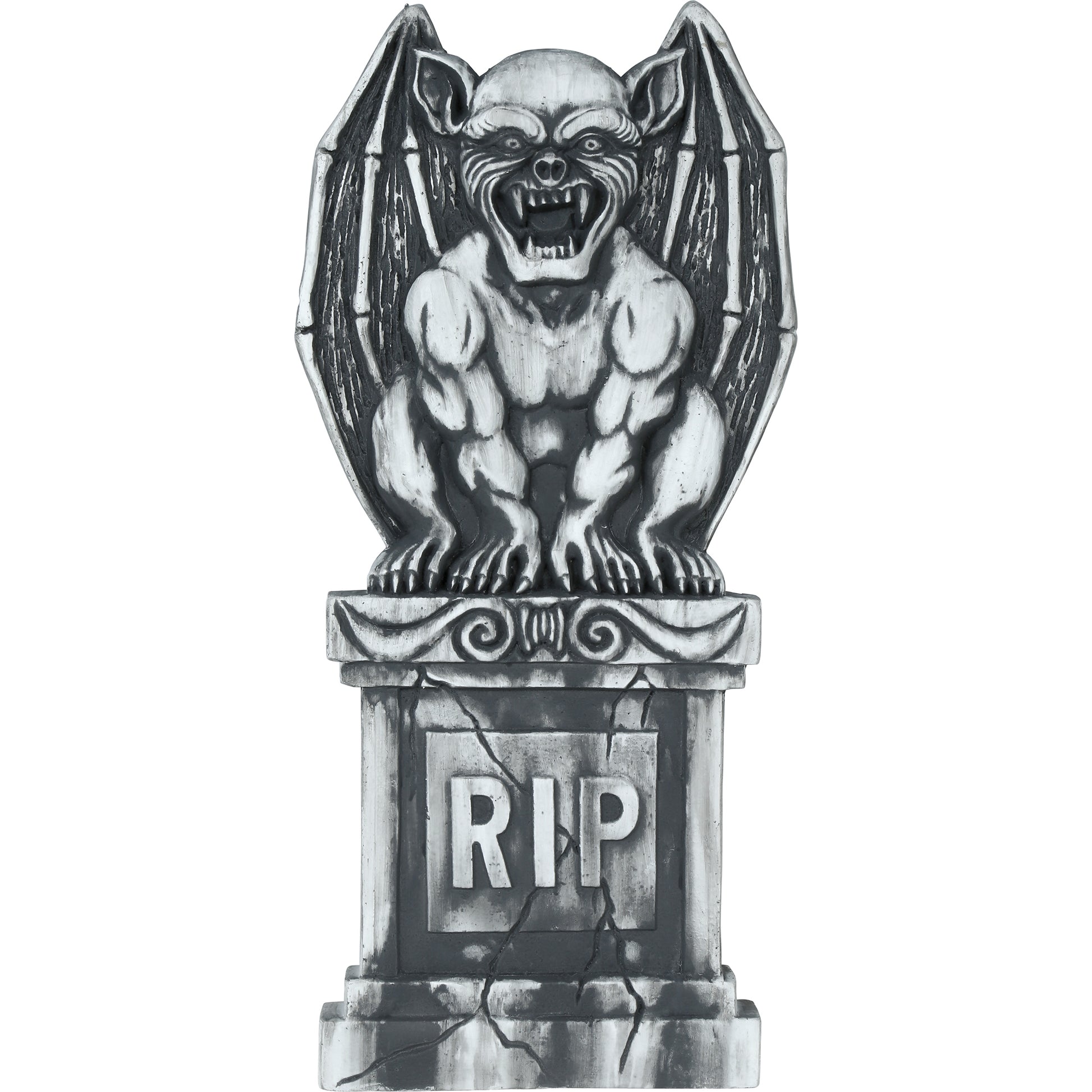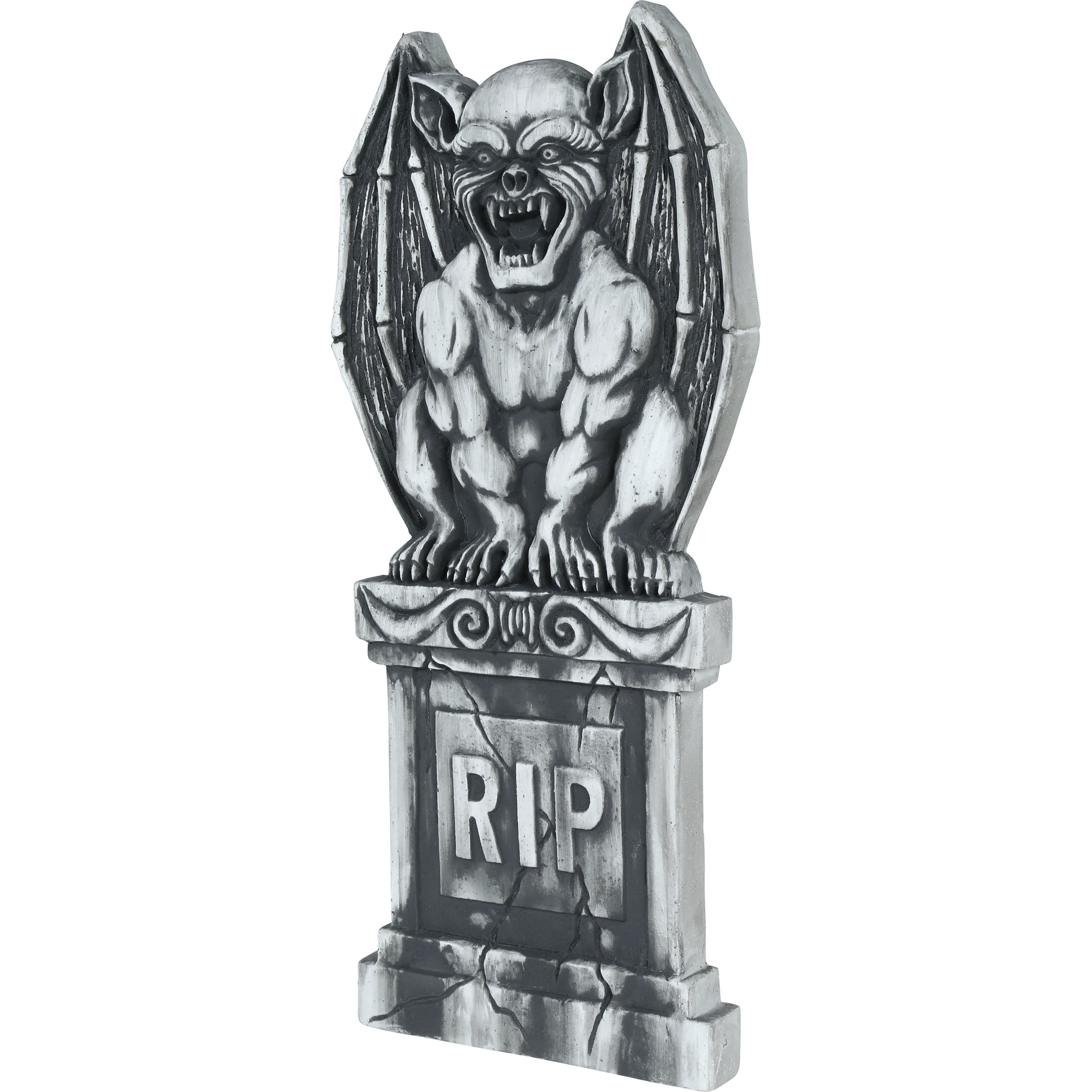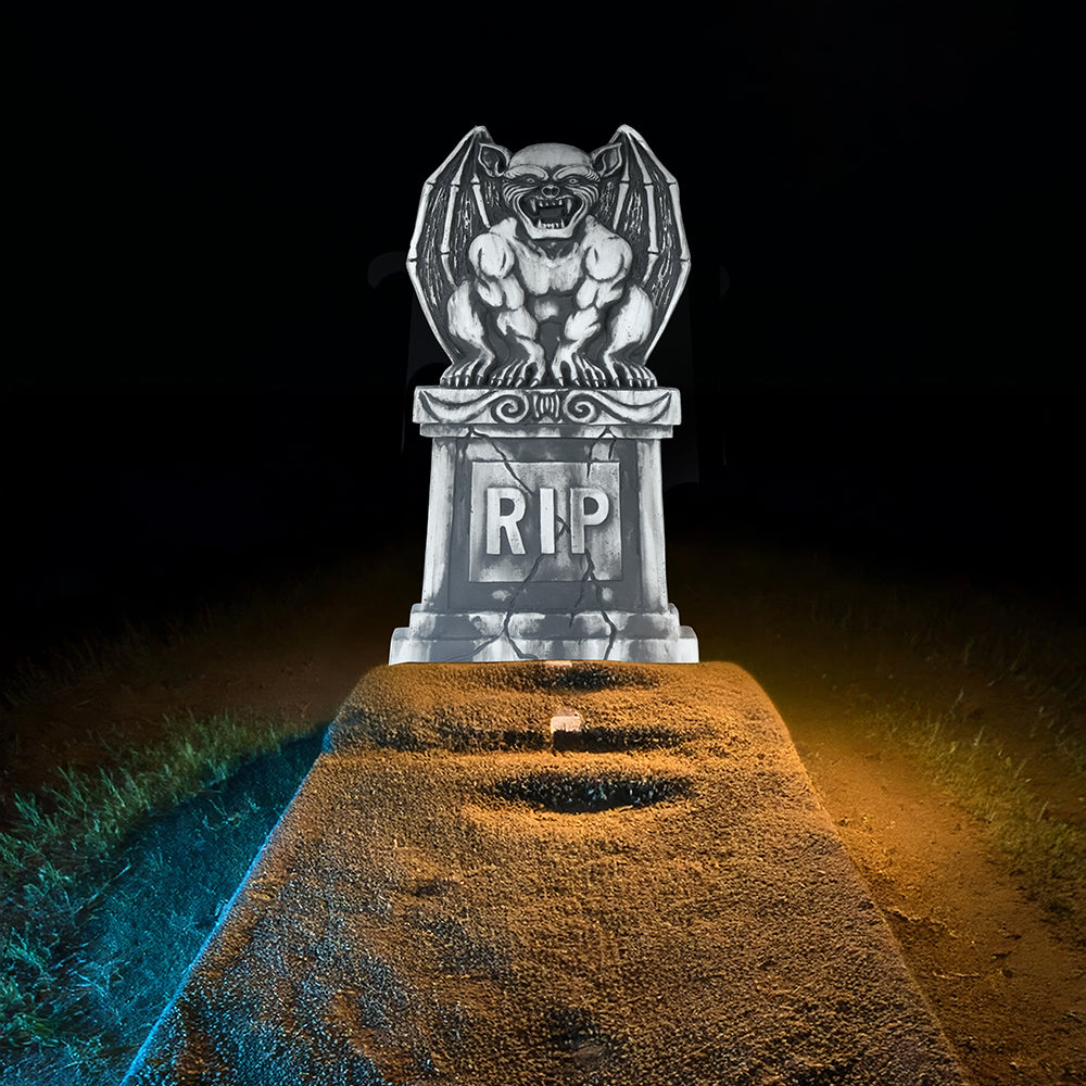 Skapa en kuslig kyrkogårdsstämning till Halloween med denna stora gravsten. Med sina 90 x 40 cm blir den ett imponerande inslag i dekorationerna och den tydliga texten "RIP" förstärker den skrämmande känslan. Perfekt att placera i trädgården, vid entrén eller som del av en större dekorscen tillsammans med spindelnät, skelett och andra läskiga detaljer. En enkel men effektfull dekoration som gör att festen känns både spöklik och stämningsfull.