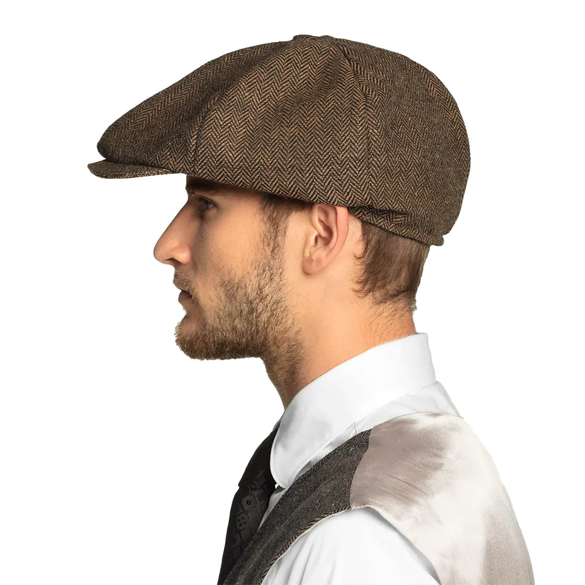 Med gubbkepsen Birmingham i brunt blir du mannen som alltid vet vädret – och ser bra ut oavsett det. Denna keps andas brittisk landsbygd, rävjakt och dramatiska deckare från TV-serierna. Mönstret i klassiskt brunmelerad fiskbenstweed ger en varm och jordnära känsla som för tankarna till gröna kullar, snåriga pubdiskussioner och tweedklädda gentlemän.