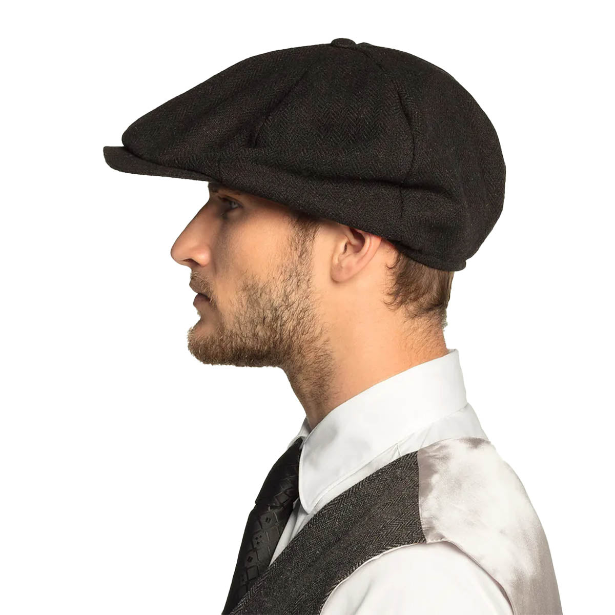 Med sin tydliga form, diskreta fiskbensstruktur och låg profil är det här inte bara en accessoar – det är en stilmarkör. Passar lika bra till en svart väst och skjorta som till en hel gangsterkostym à la 1920-tal. Oavsett om du ska på temafest, teater eller photoshoot, kommer den här kepsen att göra jobbet.