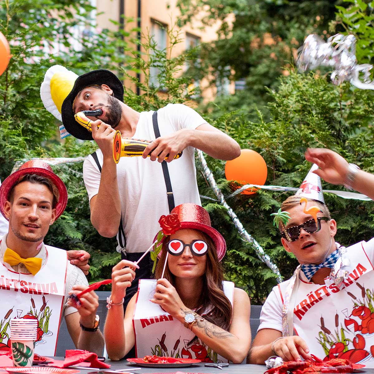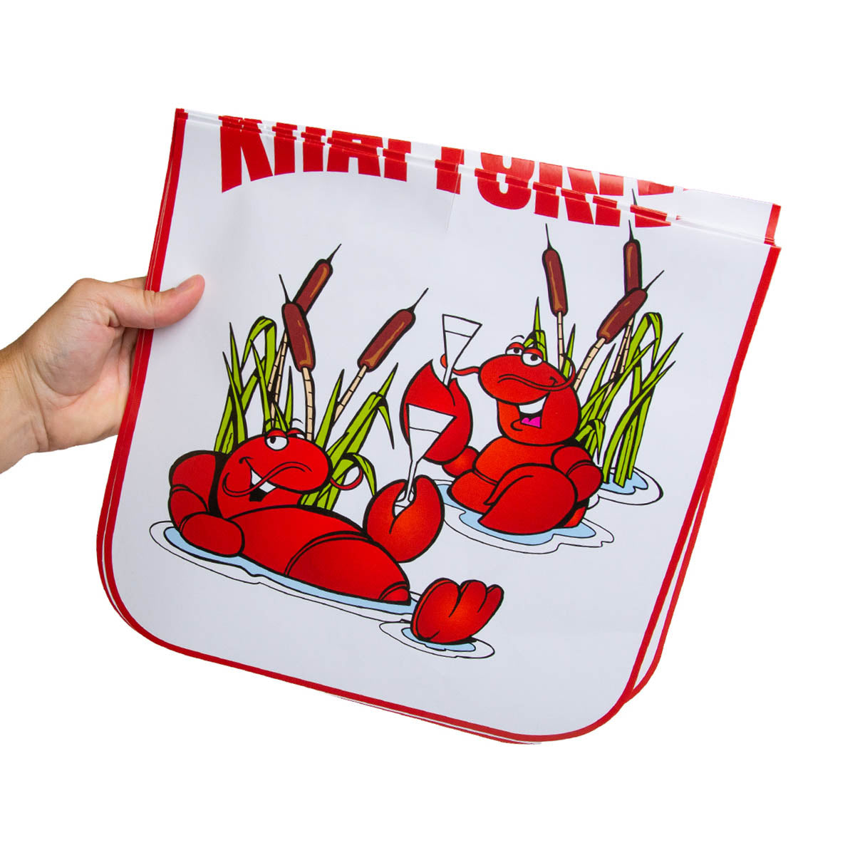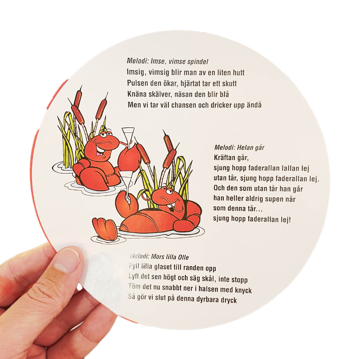 Gör din kräftskiva oförglömlig med dessa roliga engångshaklappar med snapsvisor! Förpackningen innehåller 6 stycken haklappar, perfekta för att skydda dina kläder från det flygande spillet som kan ske när man knäcker en klo. Varje haklapp pryds av glada kräftor som njuter av festen, och ett löstagbart ark med tre populära snapsvisor finns vid hålet för huvudet. Detta gör att alla deltagare enkelt kan ta loss sitt eget lilla sånghäfte och sjunga med under kvällen.