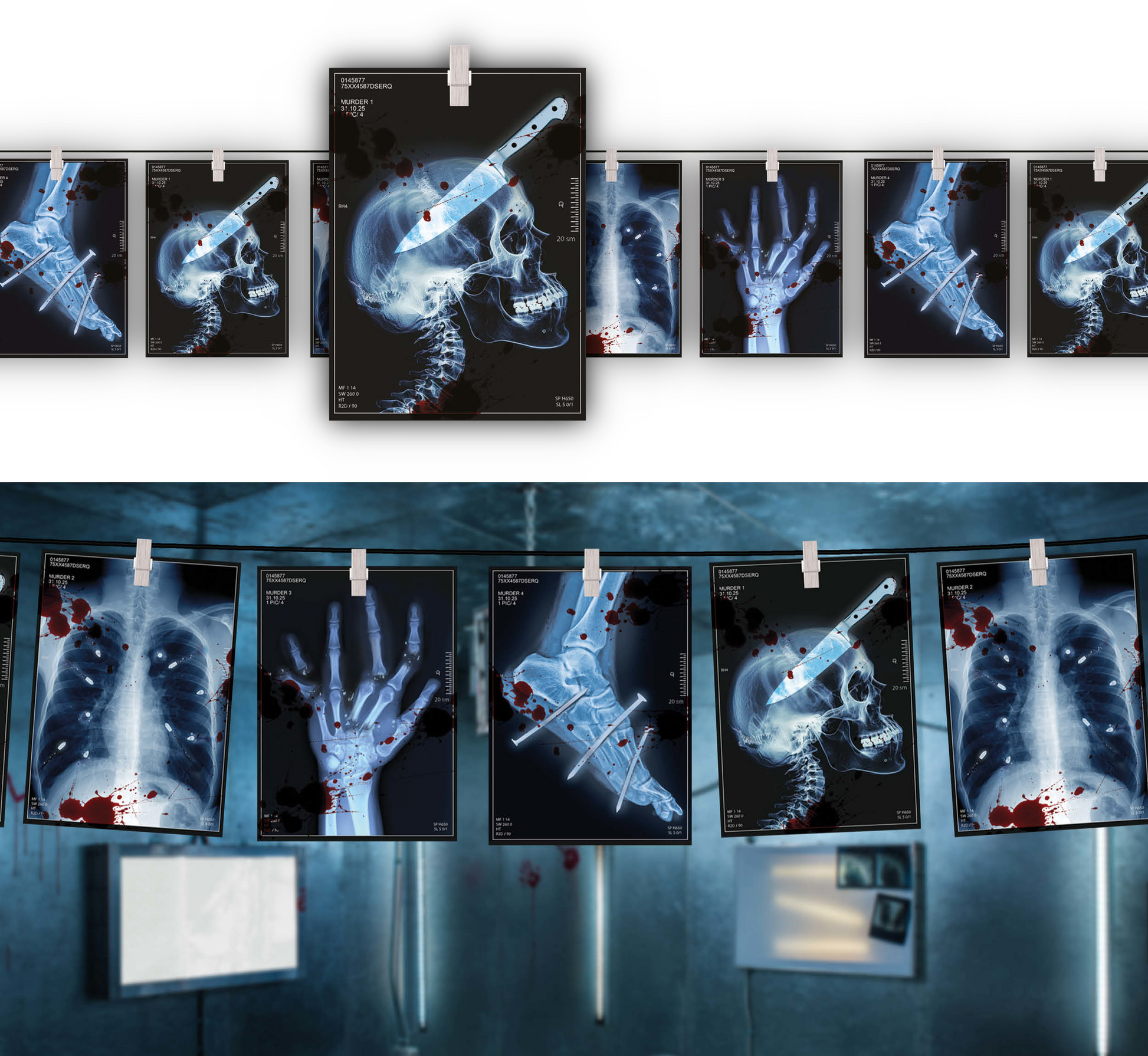 Halloween består av mer än spöken och onda andar, den här benbrytande girlangen fungerar även utmärkt för fester med mer vetenskaplig stil! Häng upp röntgengirlangen och se huvuden vridas: kusligt, snyggt och oförglömligt!