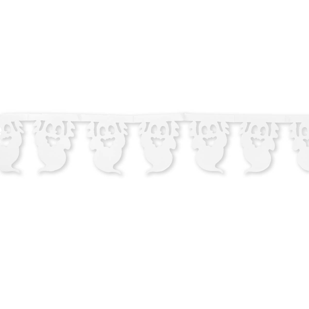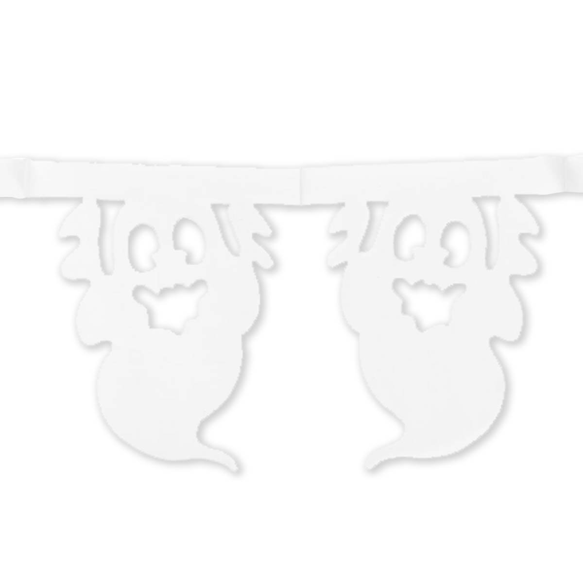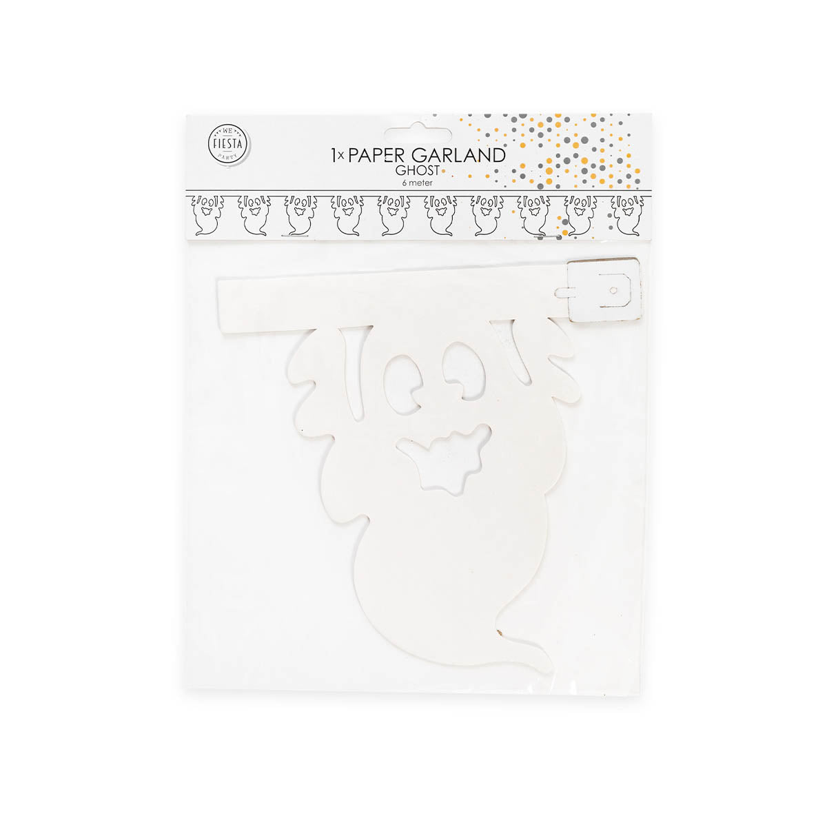 Skapa en spöklik stämning på ditt halloweenkalas med denna charmiga halloweengirlang i form av glada små spöken! Girlangen är 6 meter lång och tillverkad av papper, vilket gör den både lätt att hänga upp och miljövänlig. Med sina söta men ändå lite kusliga spökfigurer blir denna girlang det perfekta tillskottet till din halloweeninredning. Den är enkel att använda och passar perfekt att hänga i fönster, över bord eller längs med väggar för att skapa en härligt ryslig atmosfär.