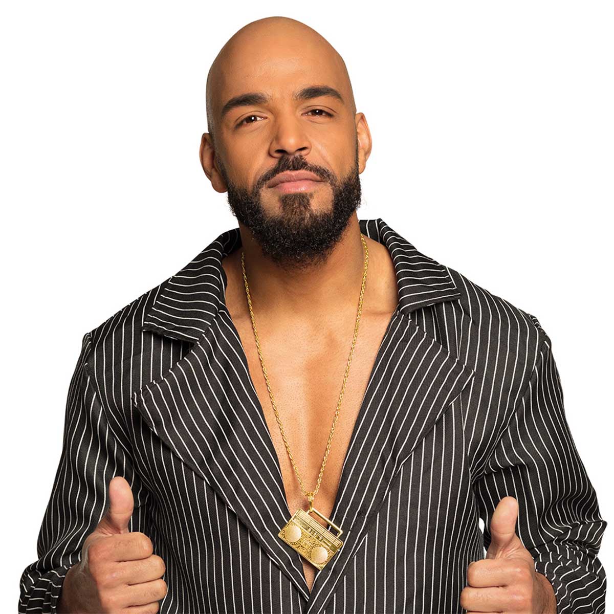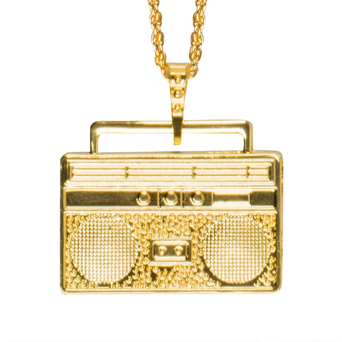 Ska du på maskerad och vill vara en rappare eller musikälskare med stil så ska du ha denna guldkedja runt halsen, längst ner hänger en guldig stereo. Cool och snyggt tillbehör på festen allt du behöver är en vit t-shirt, jeansjacka och svarta solglasögon samt hatt och du ser ut som en av de mest ökända rapparna från 80-talet.