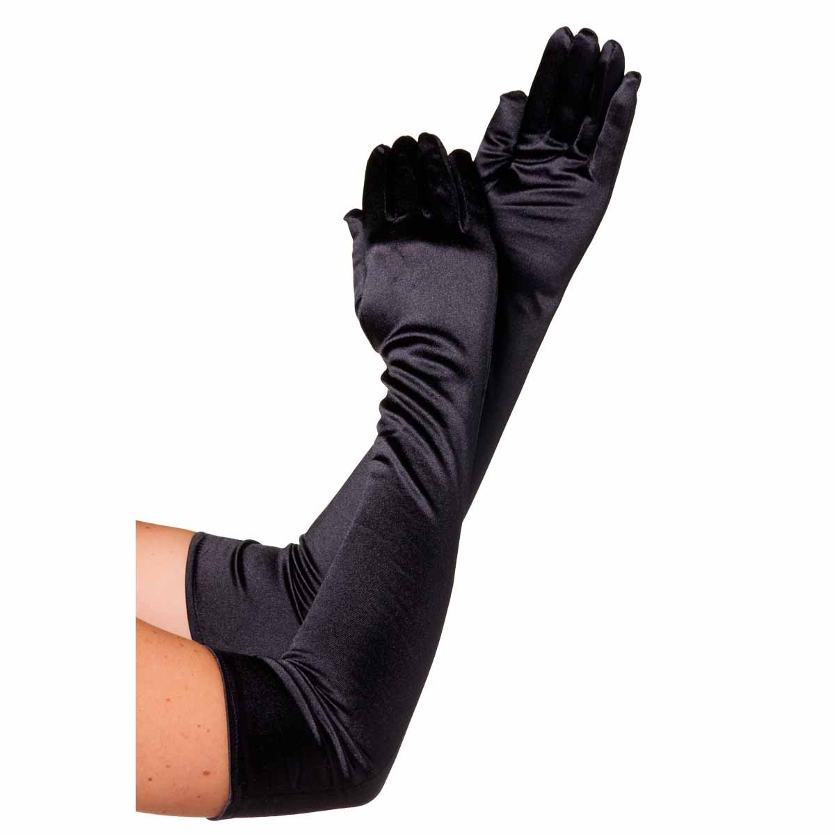 Svarta, långa och glansiga festhandskar för de fina tillfällena!