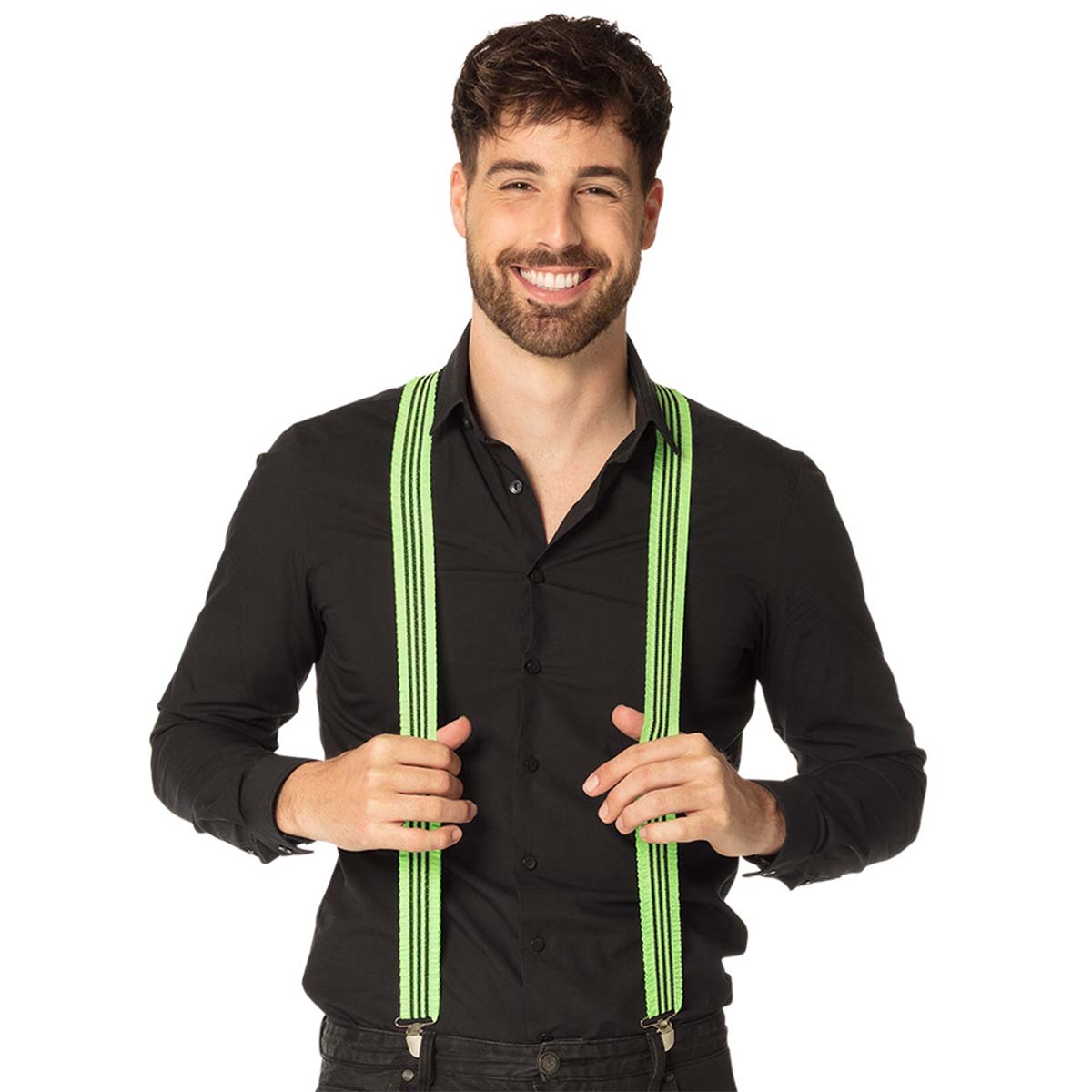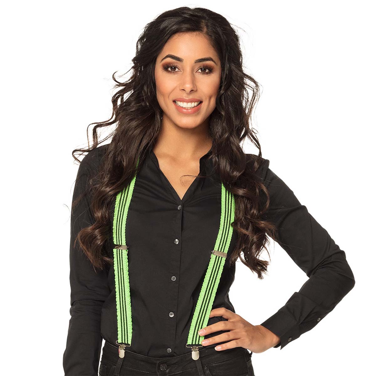 Håll upp byxorna på ravefesten med dessa färgglada neon gröna hängslen! Perfekt för de som älskar det trendiga 80- och 90-talsstuket och snygga neonfärger till vardag eller fest.