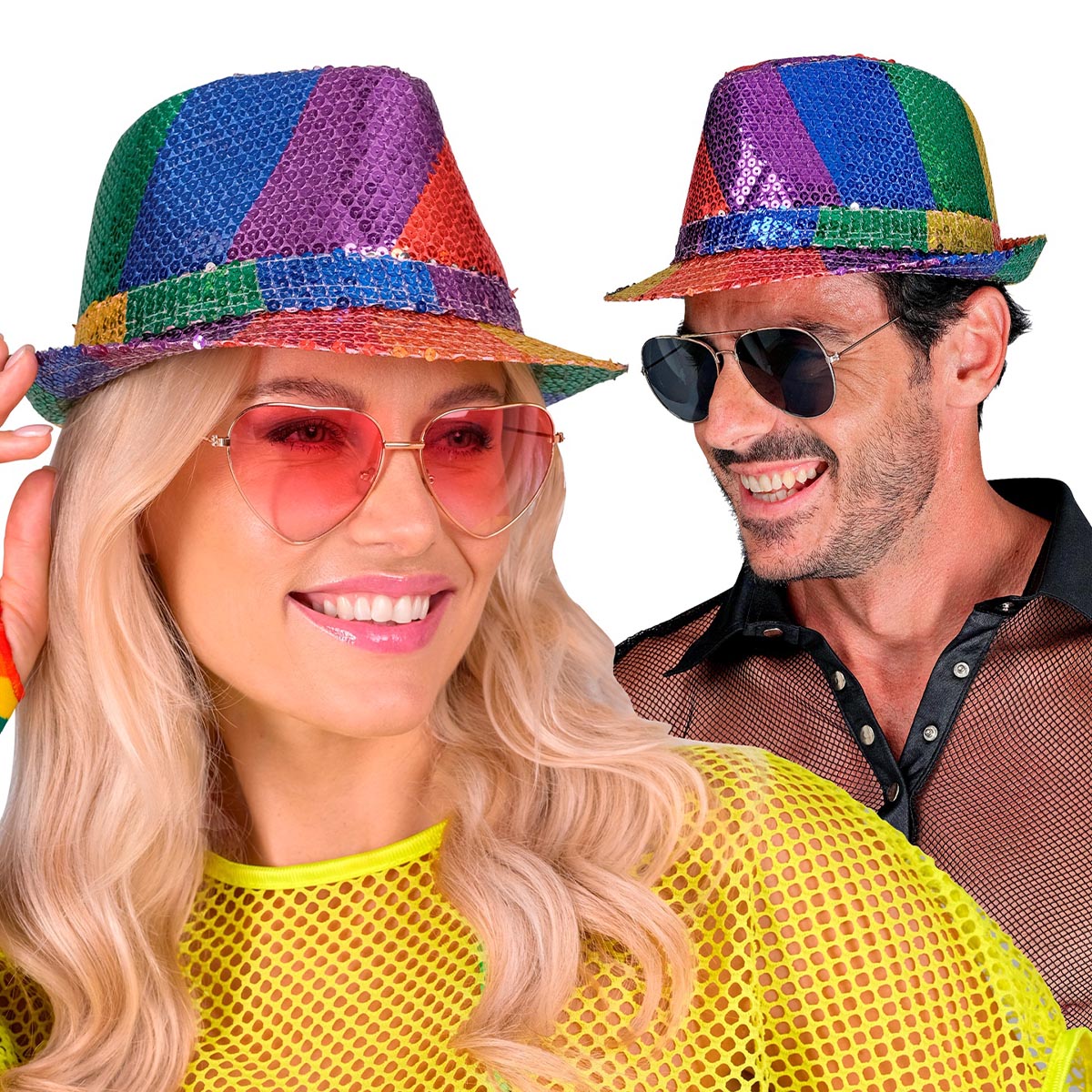 Hatten passar perfekt för festival, maskerad, pride-parader eller en kväll på stan när du vill ge din outfit det lilla extra. Ljuset reflekteras i paljetterna och skapar en spektakulär glittrande effekt, perfekt för att glänsa på dansgolvet.