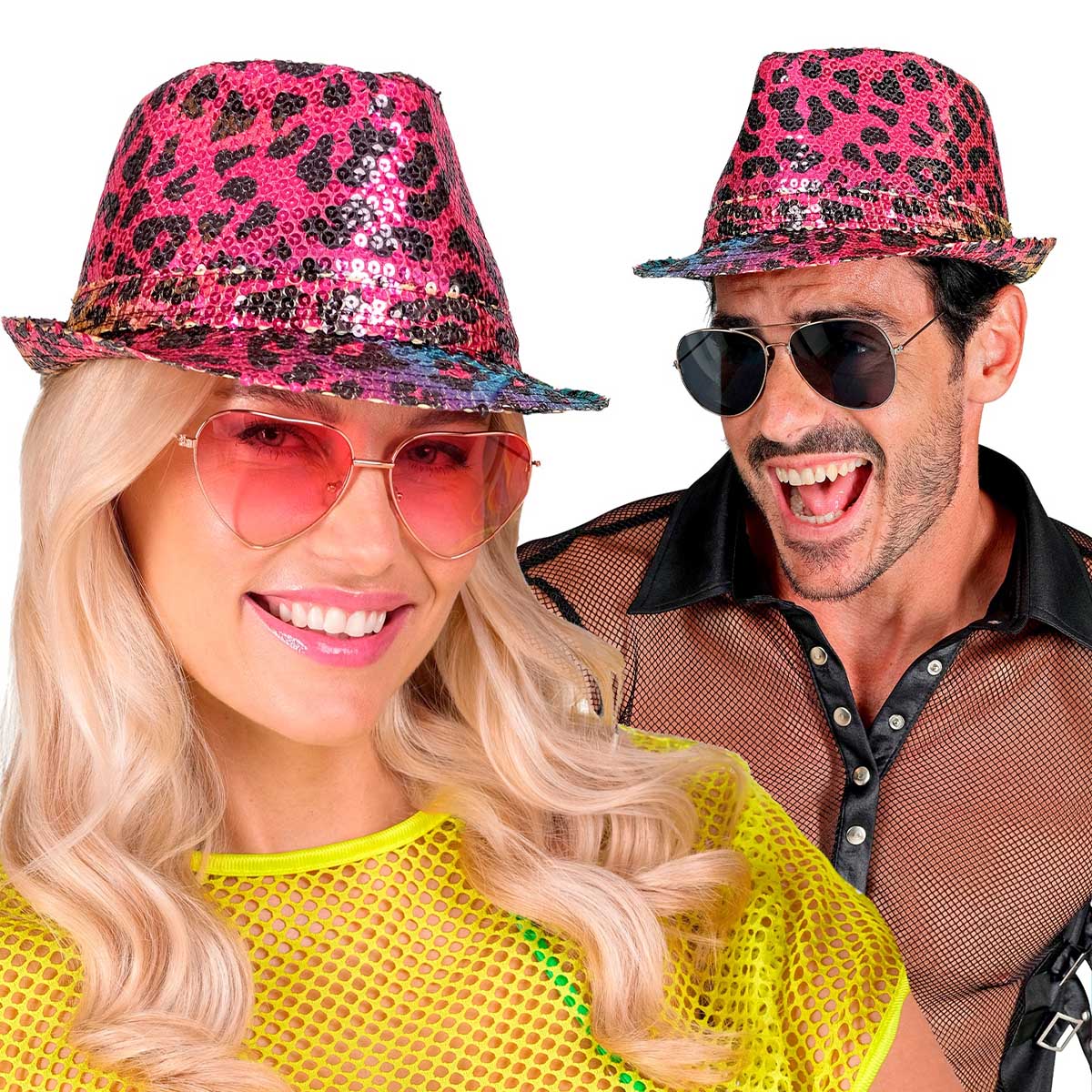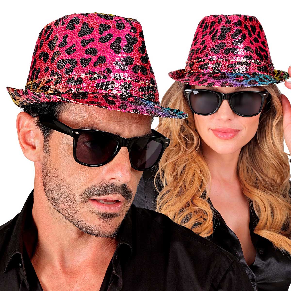 Med denna glittriga hatt på huvudet är du redo att glänsa på dansgolvet. Oavsett om du siktar på att regera schlagerfesten, bjuda på en spektakulär entré på maskeraden eller bara vill ha en färgsprakande utekväll, så är denna leopardmönstrade hatt det självklara valet.