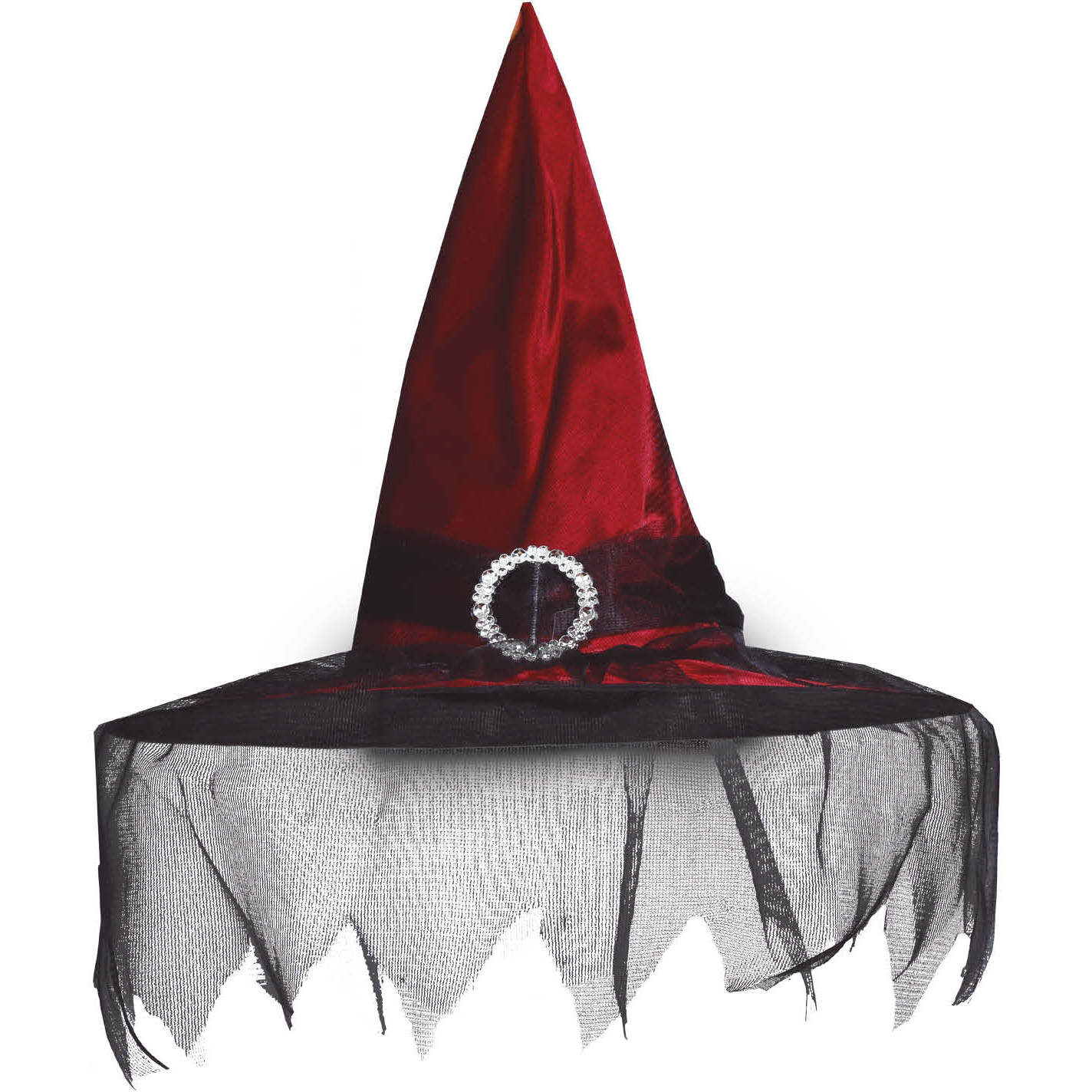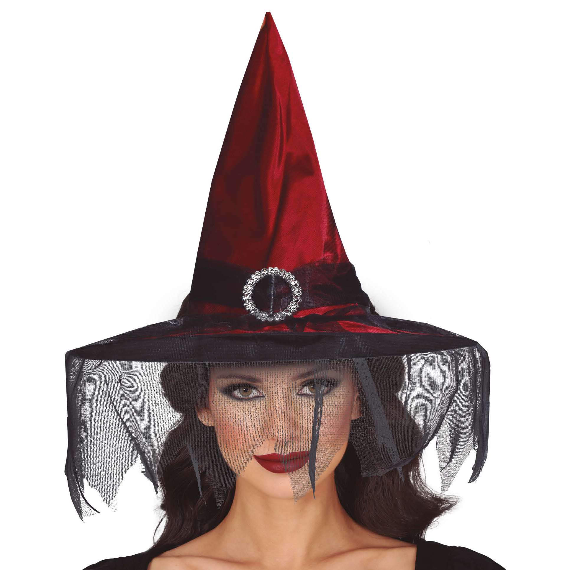 Denna häxhatt i rödbruna och svarta nyanser, komplett med en mystisk slöja, skapar en effektfull och trollbindande stil. Färgerna ger hatten en lite ovanligare och mer exklusiv känsla, perfekt för den som vill sticka ut från mängden. Passar lika bra till maskeraden som till Halloweenfesten och gör det enkelt att förvandla en enkel dräkt till en helhet med extra magi och dramatik.