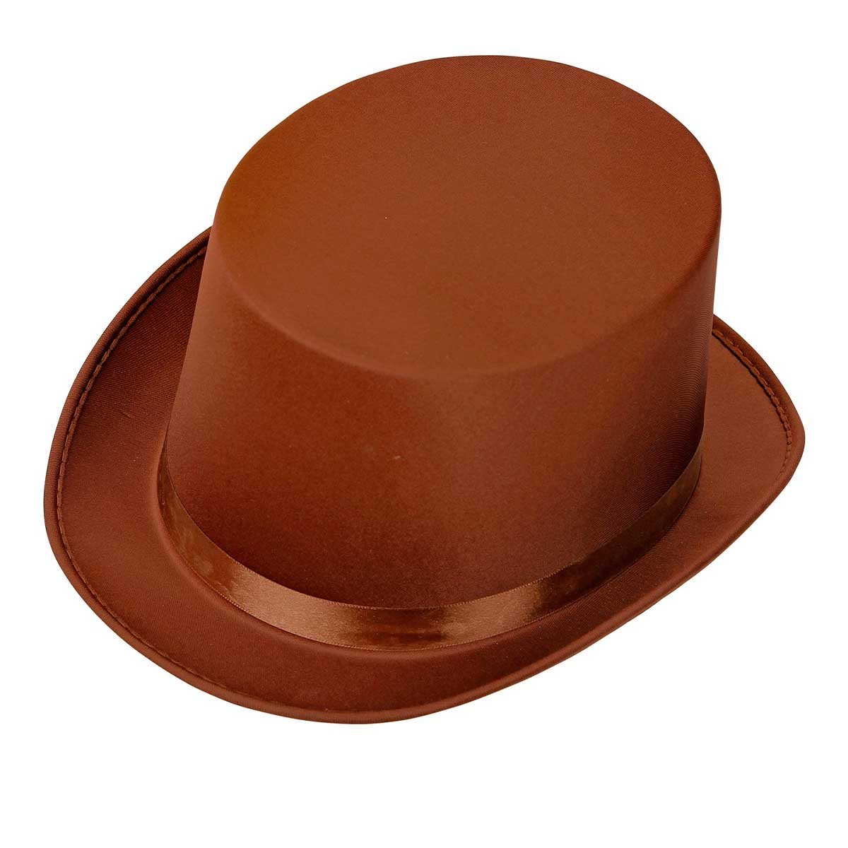 En brun hög satinhatt som ger dig en elegant och sofistikerad look. Denna hatt har en snygg högkvalitativ satin som glänser i ljuset och har ett snyggt band runt.