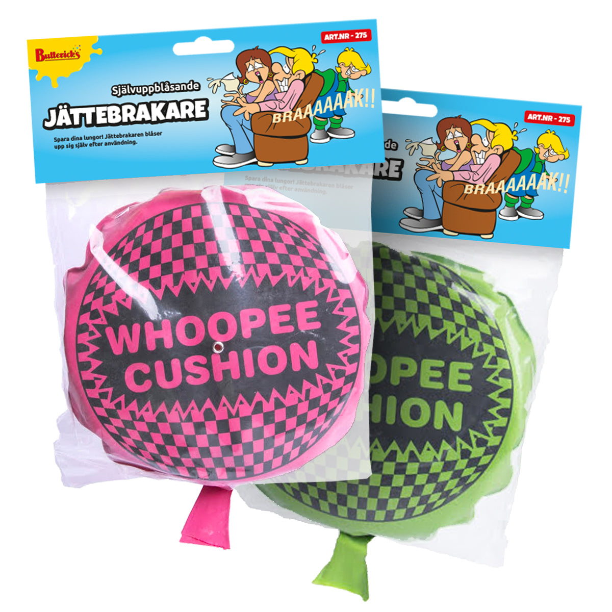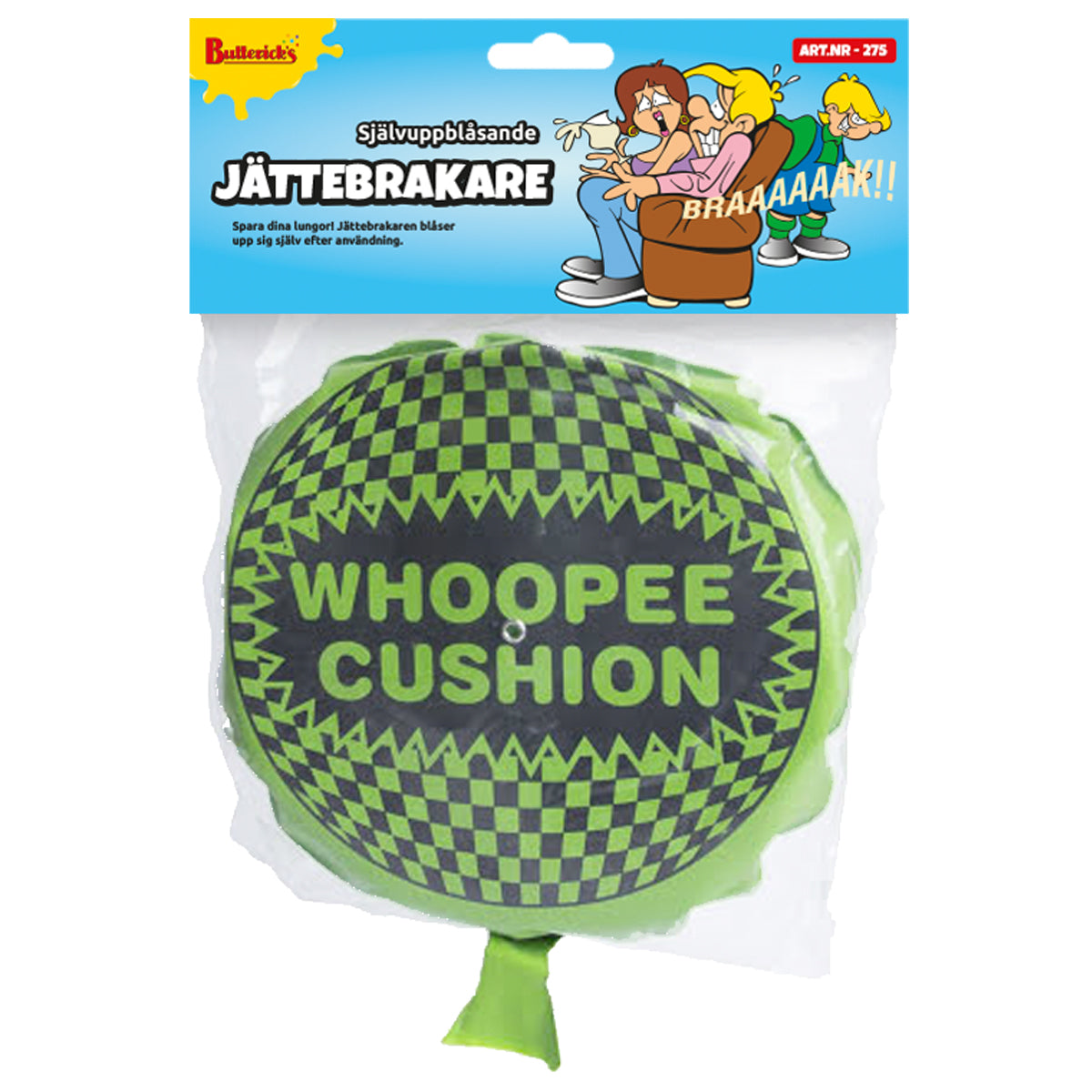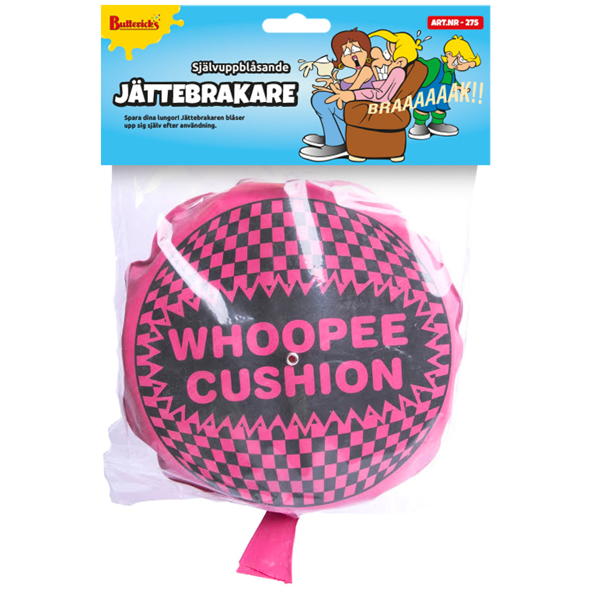 En större variant av klassikern pruttkudden! Självuppblåsbar och passar alla åldrar. Med bus och skoj livar du upp vilken tråkig dag som helst!