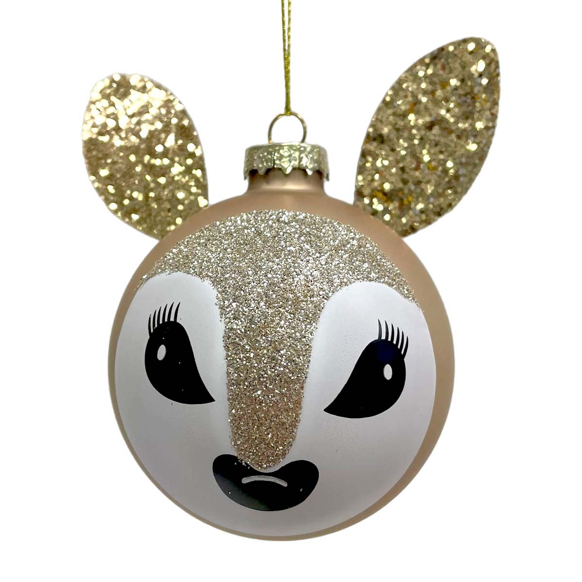 Vem älskar inte ett gulligt rådjur i julgranen, med denna fina julgranskula med stora guldiga öron är ett superfint julpynt och julgranskulan är målad likt ansiktet av ett rådjur.