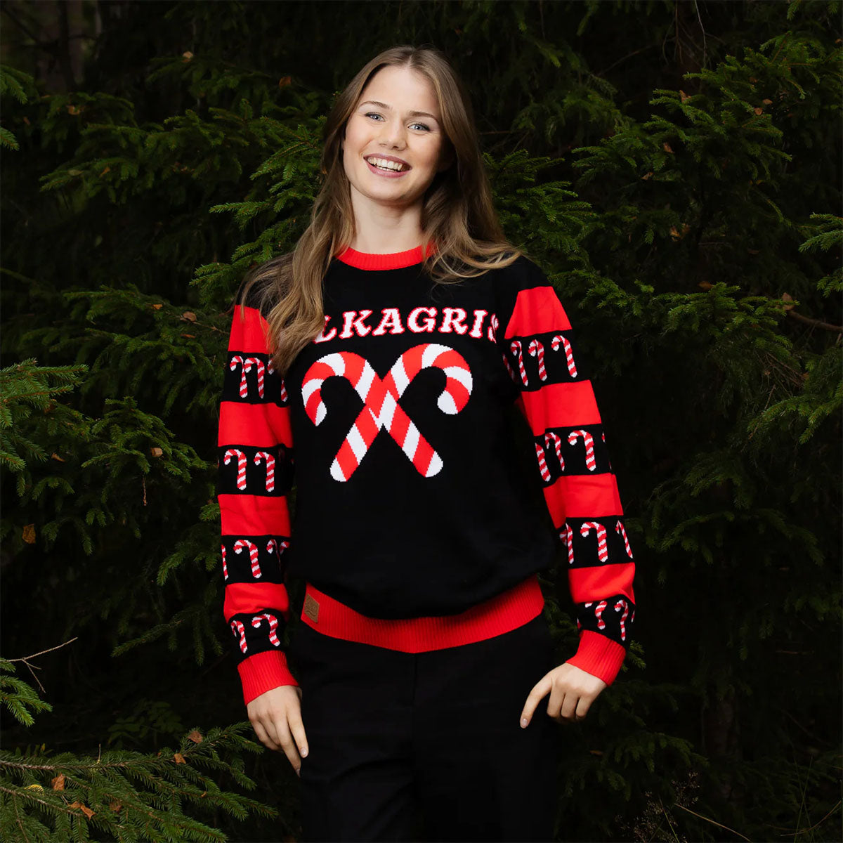 Tillverkad i ett mjukt och värmande material, passar denna tröja utmärkt för både mysiga hemmakvällar och glada julfester. Gör dig redo att bli julens sötaste snackis med en tröja som hyllar en av våra mest älskade godisklassiker!