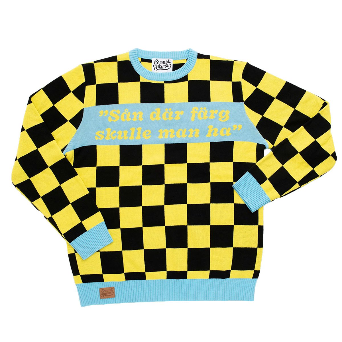Lys upp julafton med ett humoristiskt utrop: "Sån där färg skulle man ha"! Denna ikoniska jultröja från Svensk Husman kombinerar klassisk pappahumor med ett charmigt schackrutigt mönster i svart och gult. Perfekt för den som vill sprida skratt och värme under julfirandet, oavsett om det är på kontorets julfest, familjemiddagen eller julklappsutdelningen. Tröjan är tillverkad i mjukt och bekvämt material, vilket gör den skön att bära hela kvällen. Framsidan har den komiska texten i kontrasterande blått, medan baksidan pryds av en liten nisse med en pensel, vilket ger tröjan en lekfull, nostalgisk touch direkt från julafton på tv.
