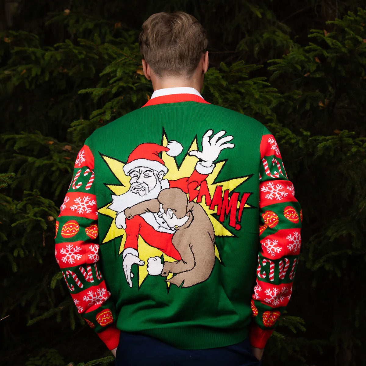 Ge din julklädsel en dos humor och attityd med den ultimata jultomten på dåligt humör-tröjan! Vår gröna jultröja med den klassiska texten "Men dö för helvete, TOMTEJÄVEL" fångar all stress och frustration som ibland kan höra julen till. Perfekt för dig som älskar humor och att sticka ut vid julens alla festligheter! Tröjan har även en unik design på baksidan med en ikonisk illustration av tomten som får ett välriktat slag – en blinkning till julfilmen och hur vi alla kanske känner oss under hektiska julveckor.