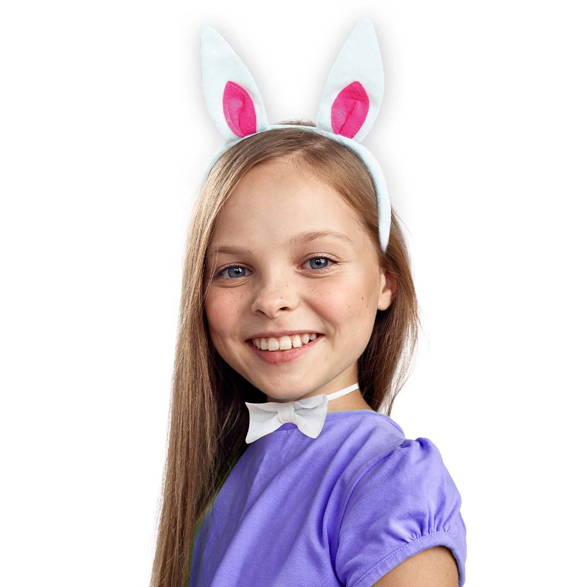Det här kaninsetet är perfekt för alla små som vill hoppa runt som en gullig kanin. Med ett mjukt diadem med öron, en fluffig bollsvans som enkelt fästs med elastiskt snöre och en vit fluga för den som vill vara en extra proper påskhare, blir förvandlingen komplett.