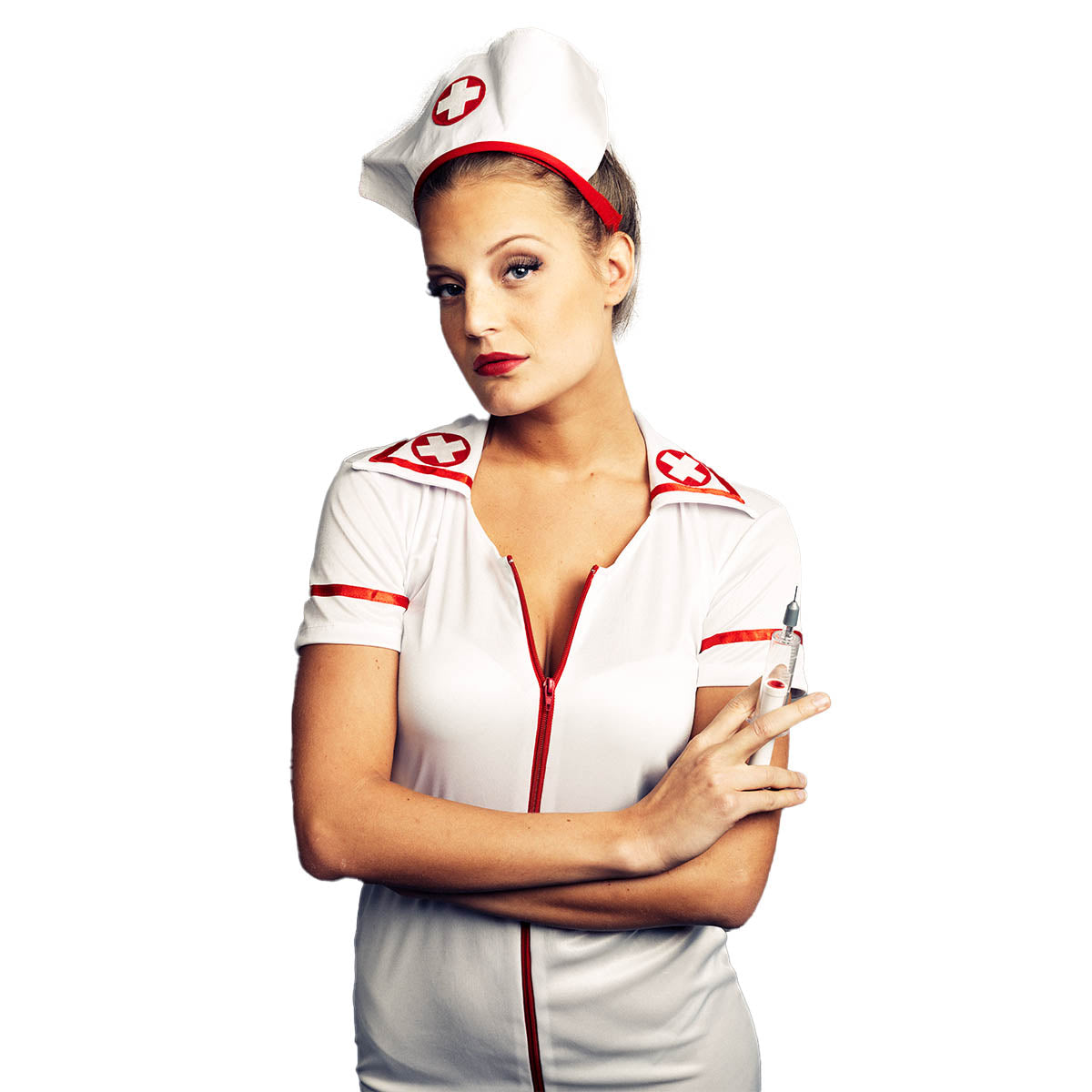 Komplettera Looken För att förhöja din outfit rekommenderar vi att du kompletterar klänningen med ett par vita stay-ups med rött band som säljs separat. De adderar en extra dimension av stil och spex till din redan fantastiska sjuksköterskeklänning.