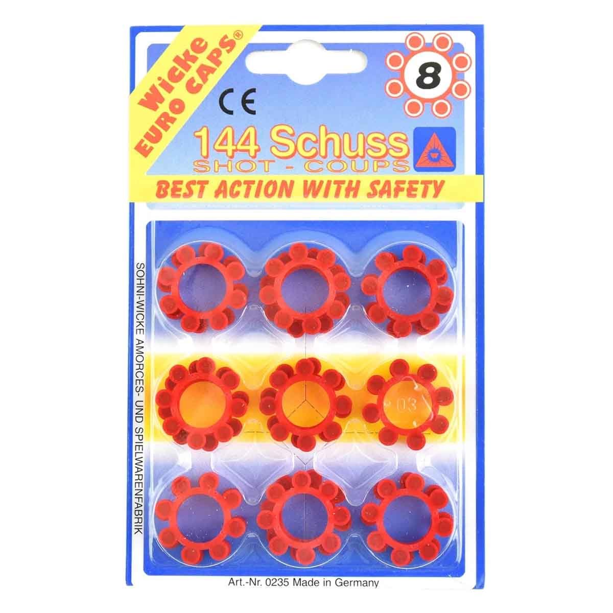 Vrid upp spänningen med våra explosiva 8-skotts knallpulverskott! Perfekta för att ge dina vapen, oavsett om det är en pistol eller ett gevär med 8-skotts revolvermagasin, en autentisk och spännande touch.