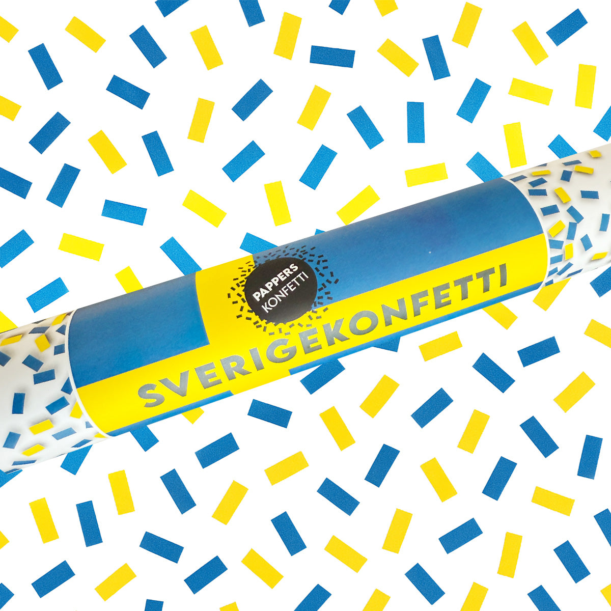 Konfettikanonen är 60 cm lång och enkel att använda – vrid bara på botten och låt konfettiregnet börja! Perfekt för studentfiranden, midsommarfester, nationaldagen eller varför inte en fotbollskväll när Sverige spelar? Den blågula konfettin är dessutom tillverkad i papper, vilket gör den lättare att städa upp efter festen.