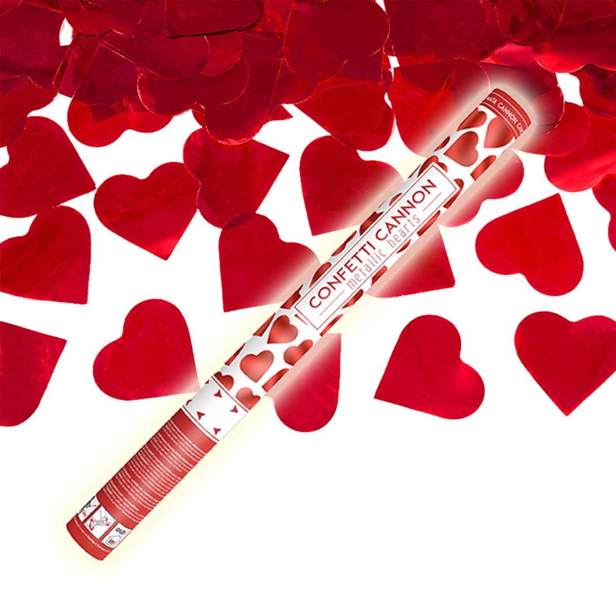 Sprid ett kärleksregn runt om personen du älskar med denna konfettikanonen fylld av utformade hjärtan som kommer flyga ut över din käresta när hjärtan faller mot marken. De röda hjärtan skapar en härlig stämning både vid frieri och bröllop och du kan även skjuta ut konfettibomben för att få till stämningen där hemma innnan din kära kommer in genom dörren. Slipp lägga tid på att sprida runt hjärtan i hemmet, skjut ut en konfettikanon och du är klar på några sekunder.