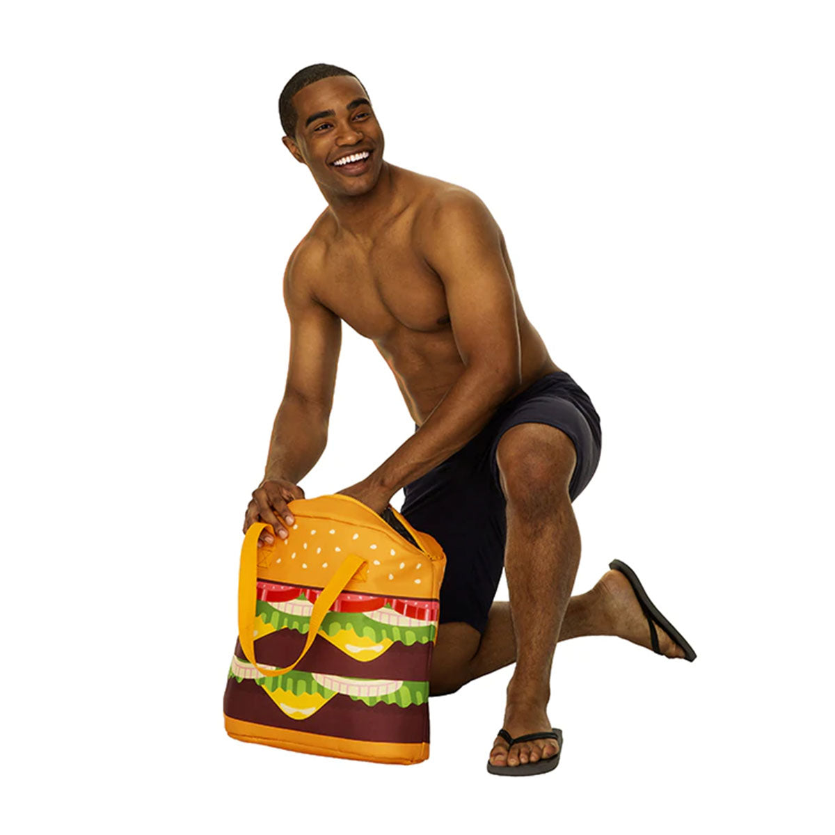 Håll din mat och dricka väl kyld på grillfesten med hjälp av en riktigt snygg kylväska med look av hamburgare! Med denna kylbagen hängandes på axeln så har du både en snygg väska och bra kylning på dina drickor.