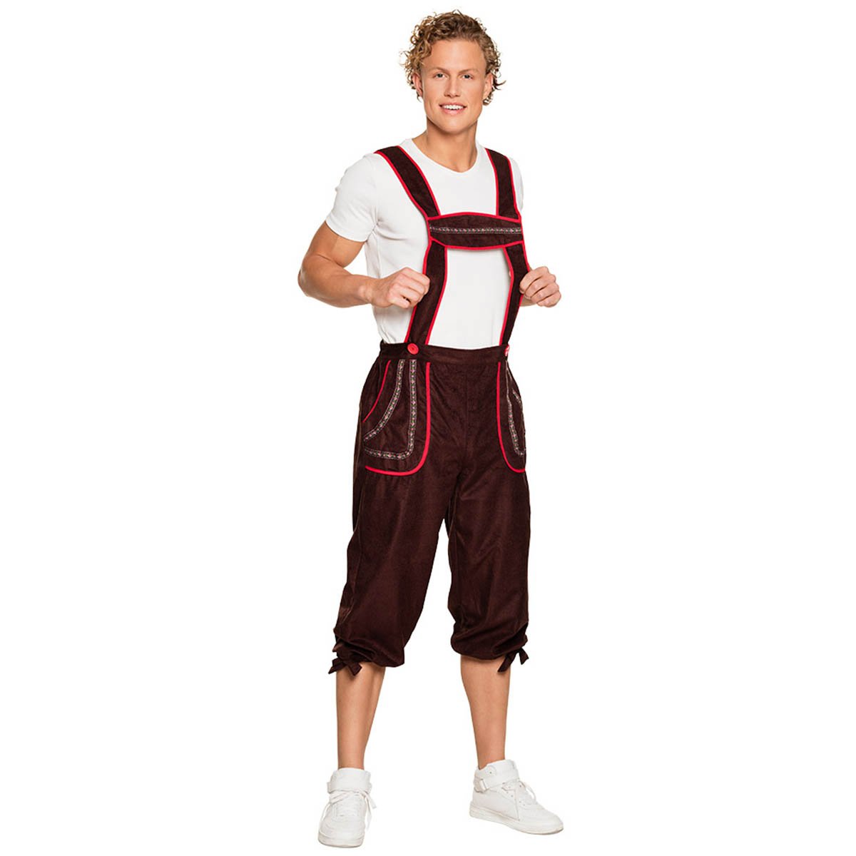 Ge din oktoberfest-look en färgstark twist med Klaus lederhosen! Dessa bruna tyrolerbyxor, prydda med röda detaljer, kombinerar klassisk stil med en modern touch. Perfekta för dig som vill sticka ut i mängden, dessa byxor är designade för både komfort och elegans under alla festliga tillfällen. Den röda accentueringen ger en livlig kontrast till det mörkbruna tyget, med enkla hängslena säkerställer en perfekt tyrolerstil.