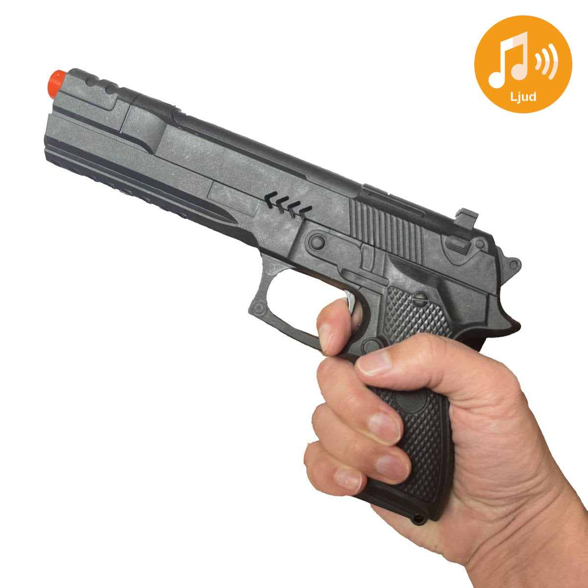 Förvandla dig till den ultimata SWAT-agenten med denna imponerande svarta leksakspistol på 27 cm – perfekt som maskeradtillbehör! Med sin extra stora design och autentiska utseende är denna pistol det självklara valet för alla som vill skapa en kraftfull och trovärdig look. Tillverkad i slitstark plast med en mattsvart finish, ger pistolen ett robust och realistiskt intryck som kommer att komplettera vilken SWAT-utstyrsel som helst.