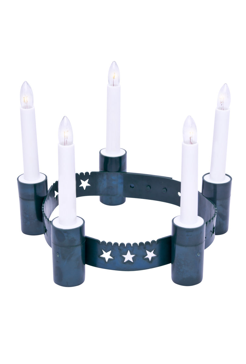 Sprid ljus och glans i vintermörkret med denna eleganta luciakrona i guld! Perfekt för luciatåg, adventsfirande eller varför inte som en festlig accessoar under julens sammankomster. Kronan är tillverkad av slitstark plast med en skimrande guldglans som ger ett stilrent och traditionellt intryck. Med fem varmvita ljus, som drivs av AA-batterier (batterier ingår ej), blir du en strålande syn och garanterad stjärnan i tåget.