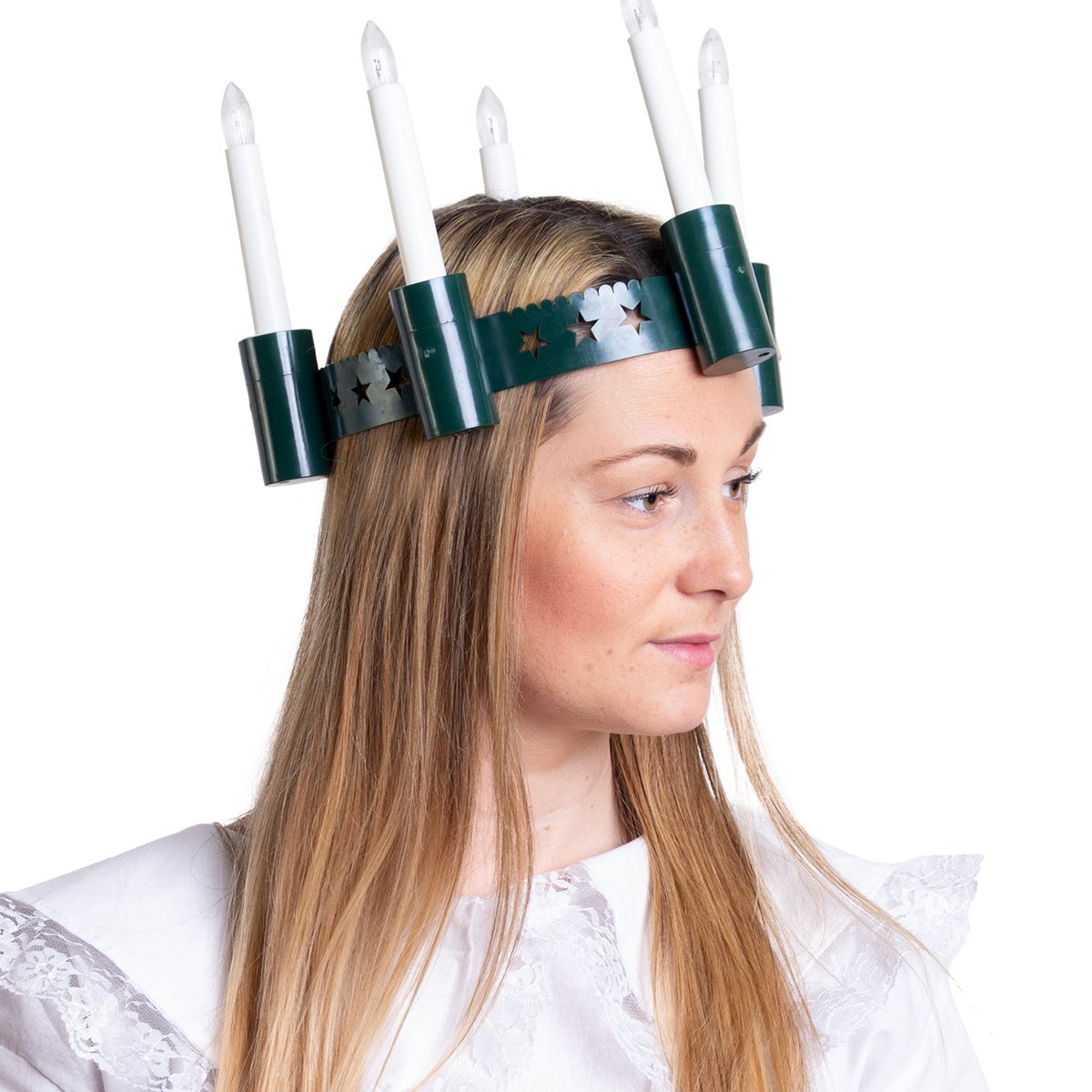 Ljuskronan är lätt och bekväm att bära, vilket gör den idealisk även för längre ceremonier. Lamporna avger ett mjukt och inbjudande ljus som bidrar till en varm och mysig atmosfär. Med sin höjd på 14,5 cm framhäver den din roll som Lucia på ett klassiskt och stilfullt sätt.