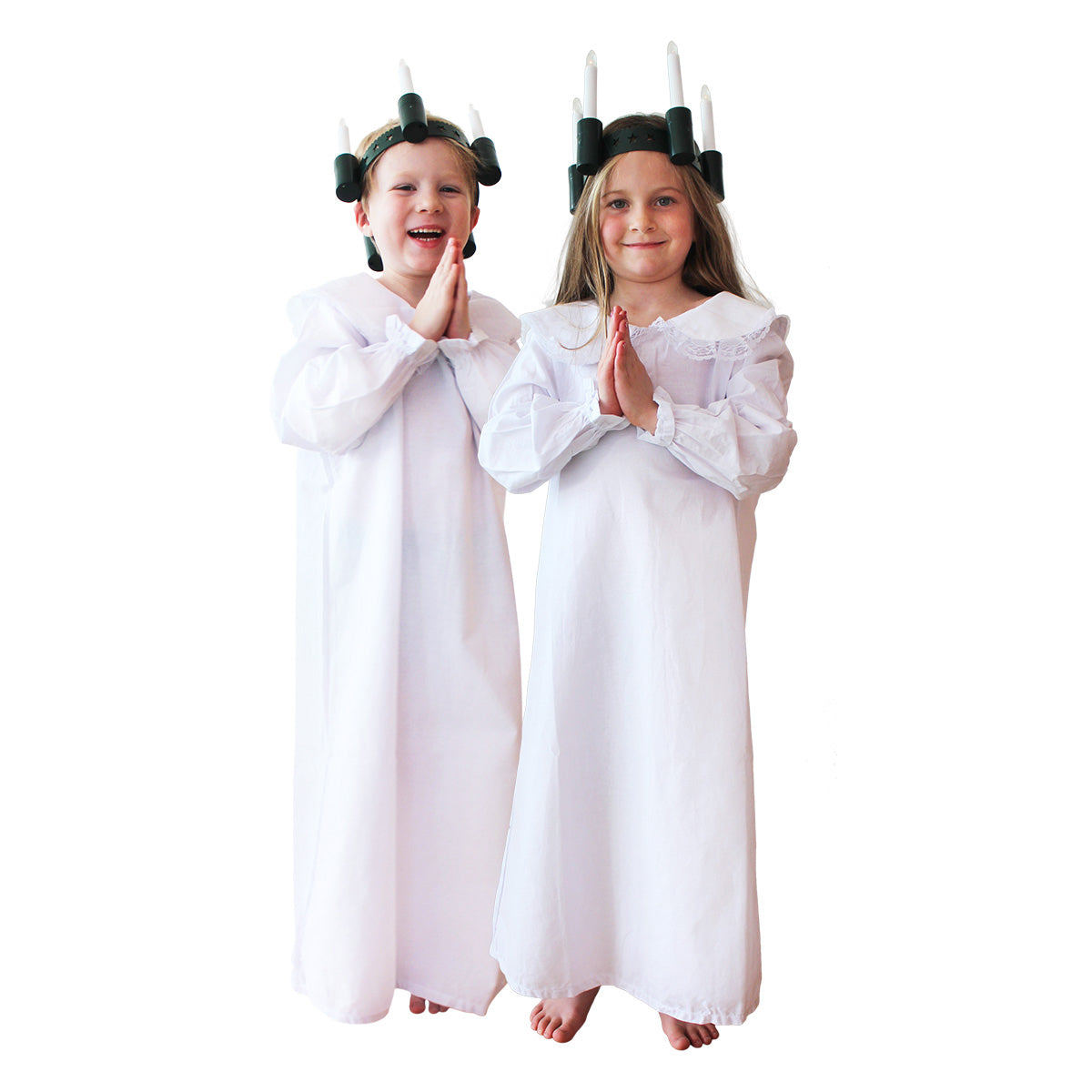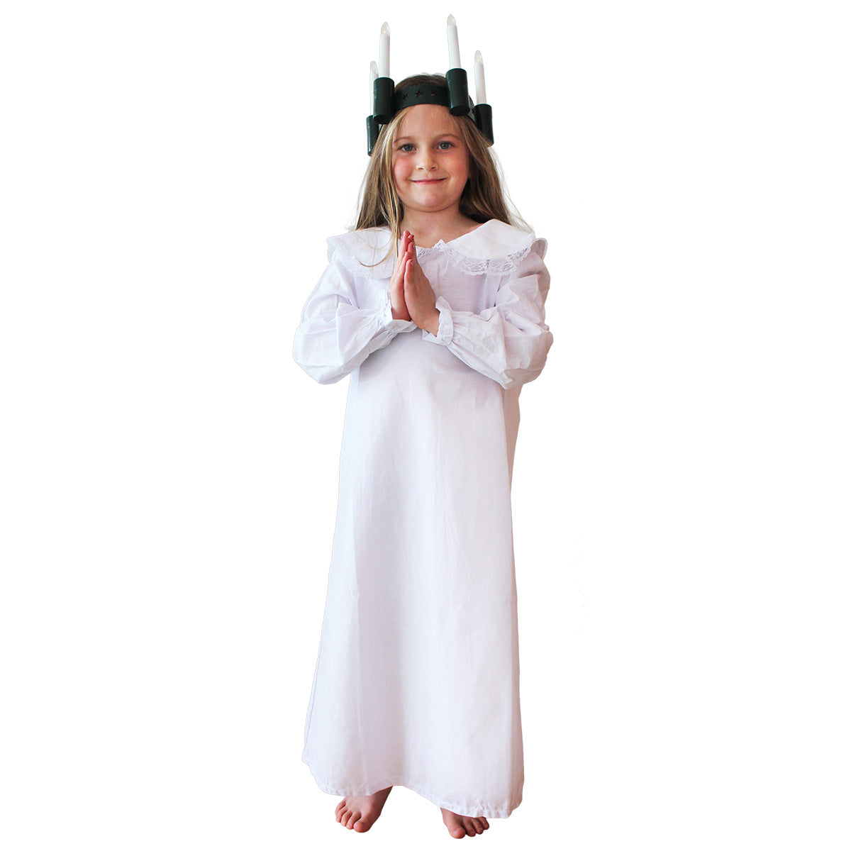 Skapa en stämningsfull och traditionell känsla med ett lucialinne för barn. Det vita linnet är en självklar del av luciatåget och passar både som klädsel för Lucia, tärna eller stjärngosse. Med sin klassiska design och bekväma passform är det enkelt att bära även under längre framträdanden. Linnet kan kompletteras med krona, glitterband eller stjärnstav för att skapa en personlig och komplett juloutfit. Perfekt till skolans eller förskolans luciatåg, julfester och andra högtidliga tillfällen.