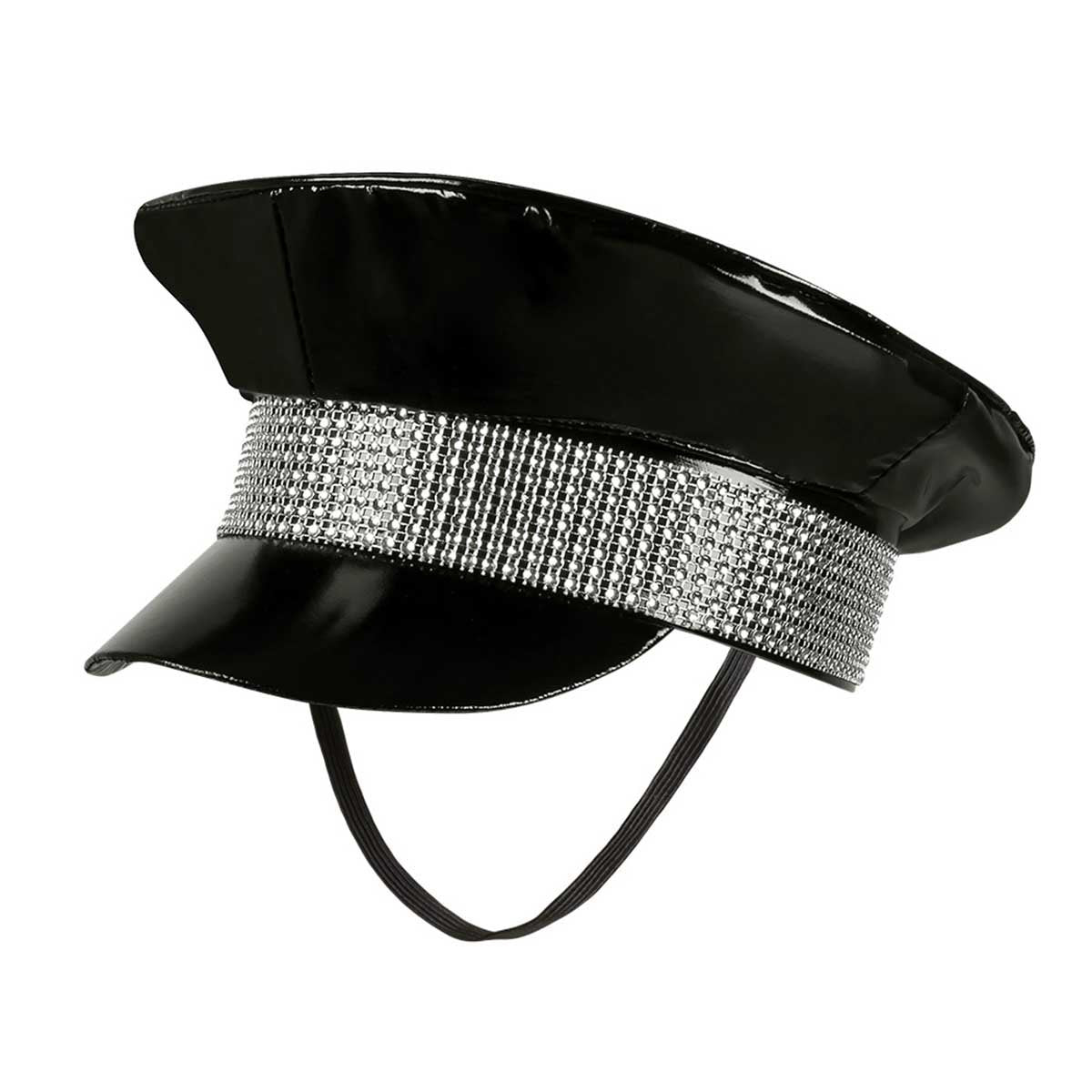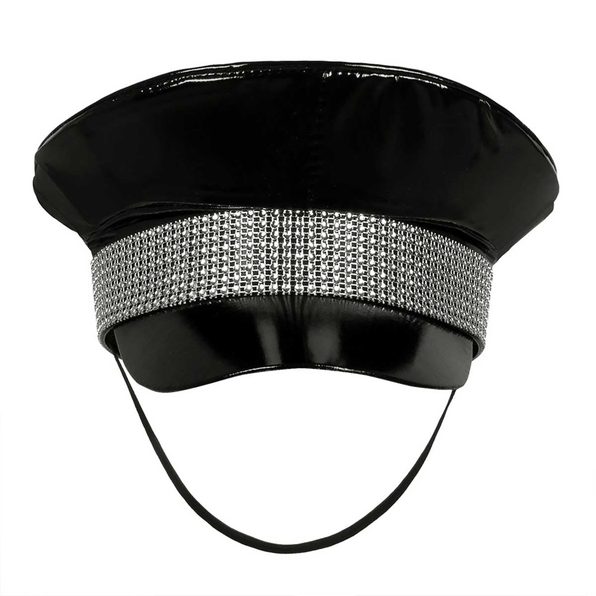 Givakt! Streck på kroppen och på med festivalkepsen! En festgeneral kräver en snygg hatt på huvudet och denna svarta machokeps med silvrigt nitband är den perfekta kepsen för sommarens alla fester.