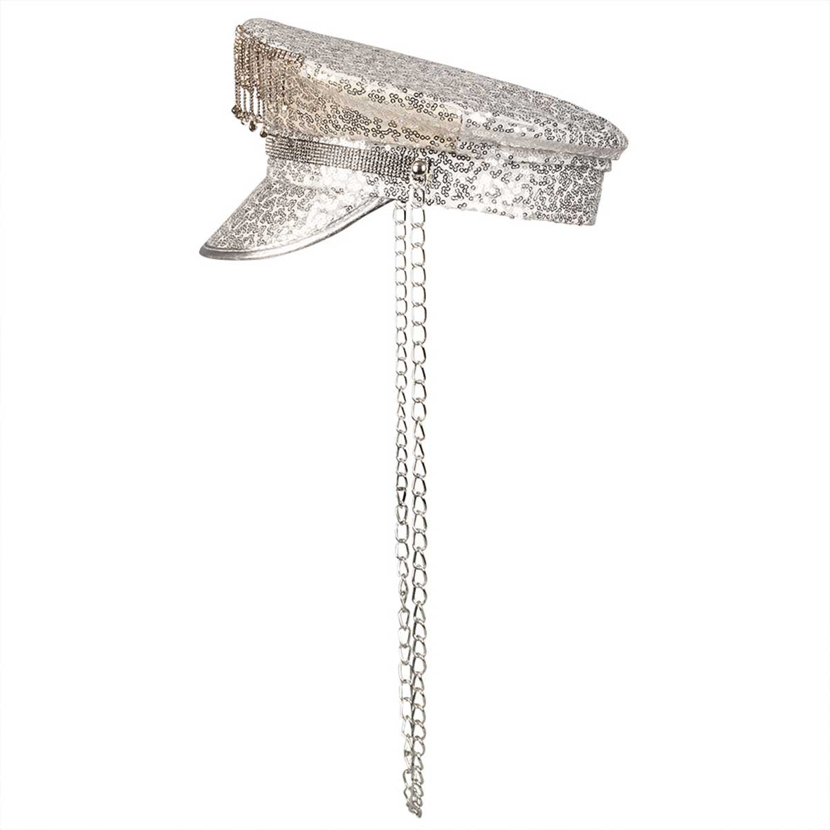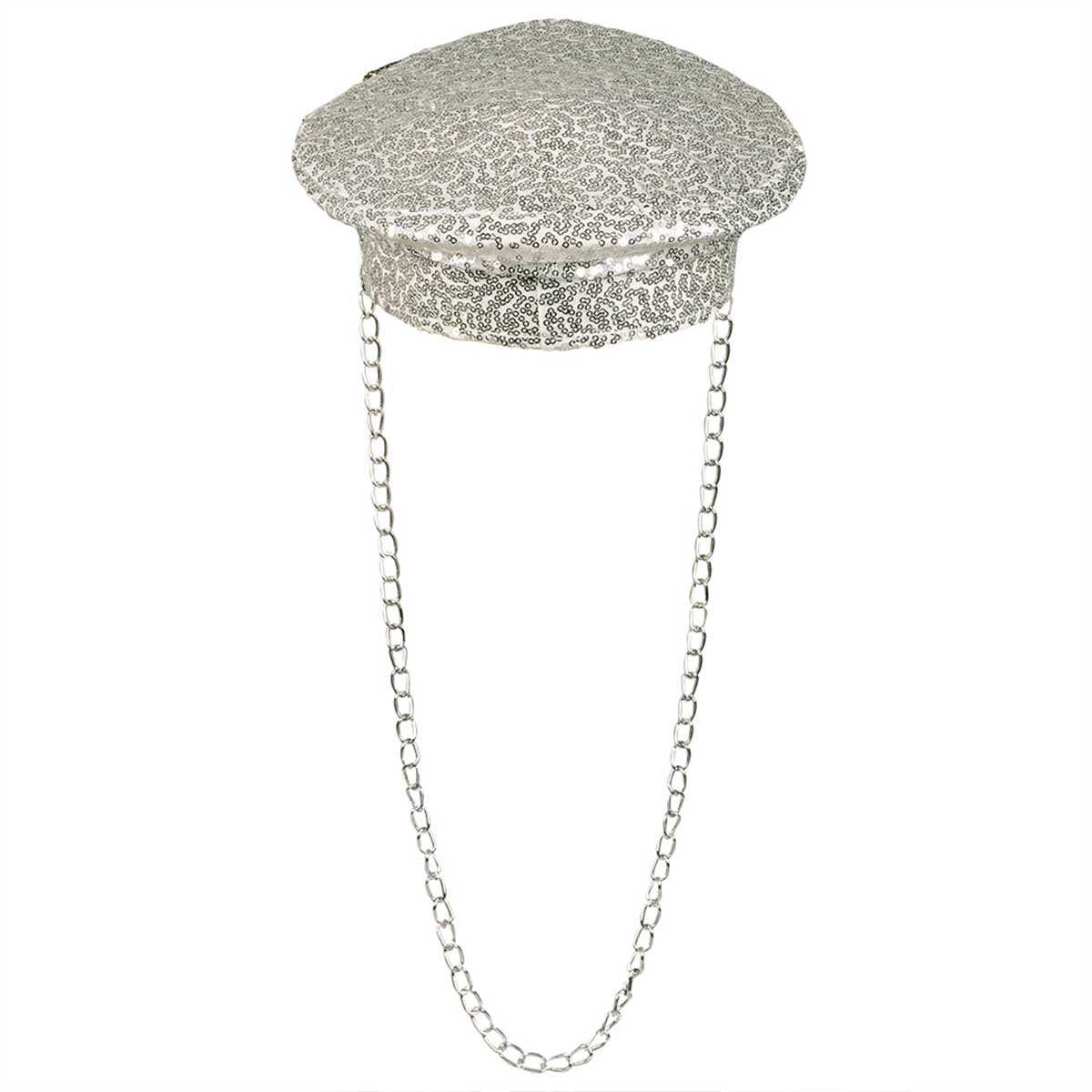 Givakt! En festgeneral ser till att festen lever på sitt max och en ordentlig festivalfest kräver en snygg matchokeps på huvudet. Denna silvriga generalshatten med silverkedja är ett perfekt komplement till 90-talsfesterna och passar bra tillsammans med din silvriga outfit.