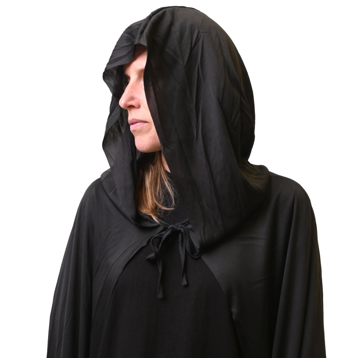 Använd den täckande huvan för att dölja ditt ansikte och skapa en air av mystik, eller ha den slängd bakåt över axlarna för en mer avslappnad men ändå dramatisk effekt. Gör en entré i full kåpa och ta sedan av dig den för att avslöja din underliggande maskeraddräkt, eller komplettera din vampyr-, häxa- eller dödsgud-look genom att behålla den på hela kvällen.