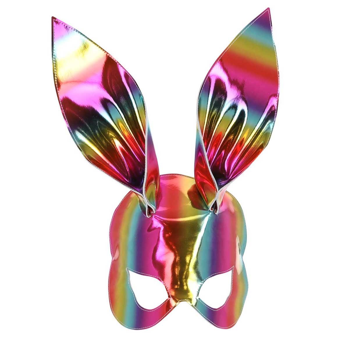 Låt denna regnbågsfärgade ögonmask med kaninöron bli din ultimata accessoar för maskerader och festliga tillfällen.